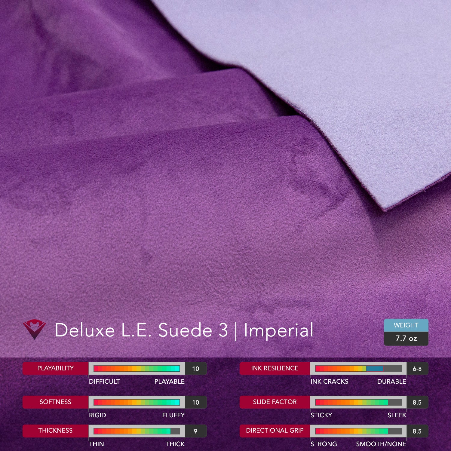 Deluxe L.E. Suede 3.0 is a custom dyed version of our benchmark DLES 2.0. Nearly half an ounce heavier, the dye process once again does wonders to the original DLES fibres that allows for better ink resilience, increasing its rating from 2.5 to a minimum of 6, maximum of 8.5 in our preliminary tests.