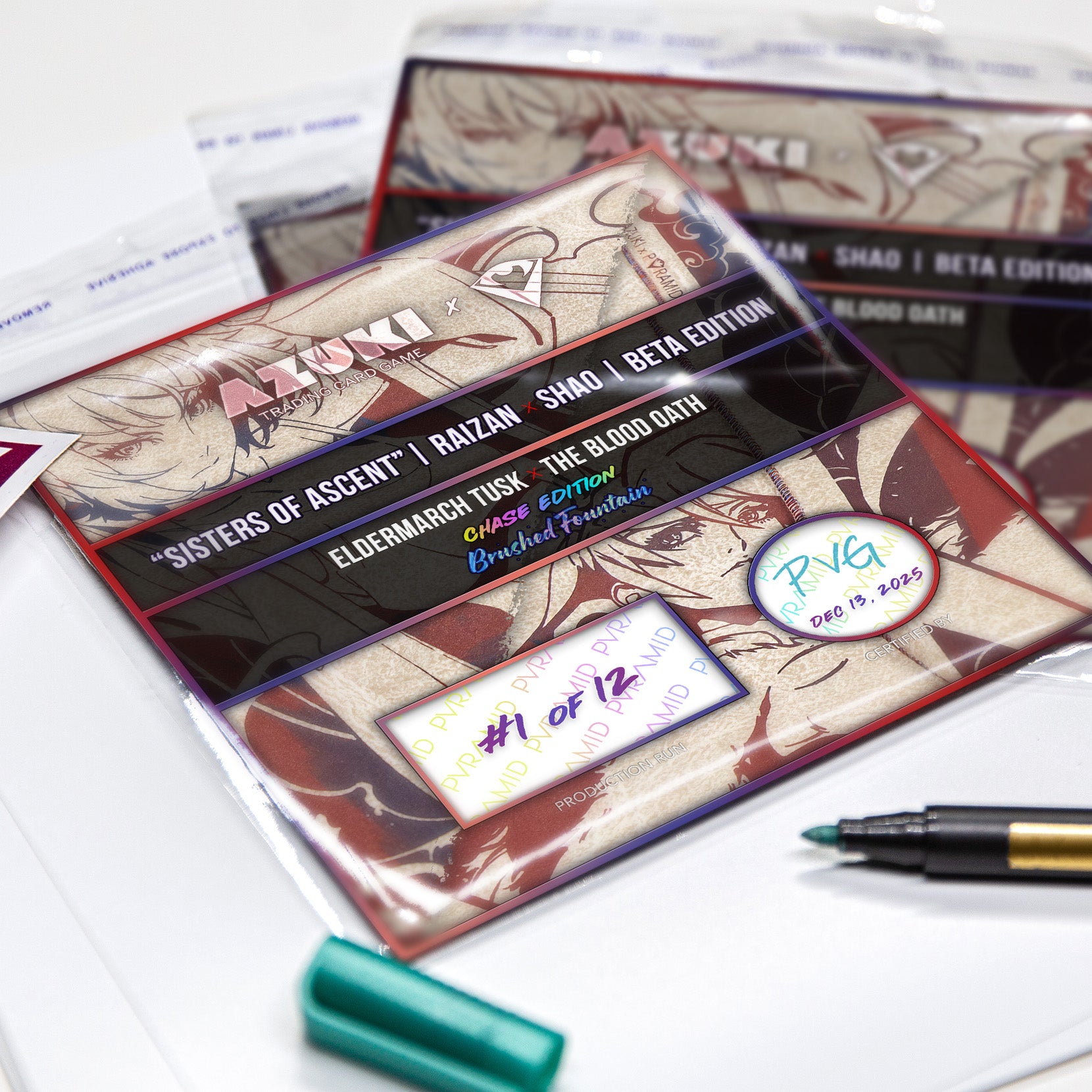 We are honored to bring you a new collection of Artisan Field Cloths from the Azukiverse straight to your battlefield. Sisters of Ascent features sisters Shao and Raizan in an epic clash beyond the Torii gate.