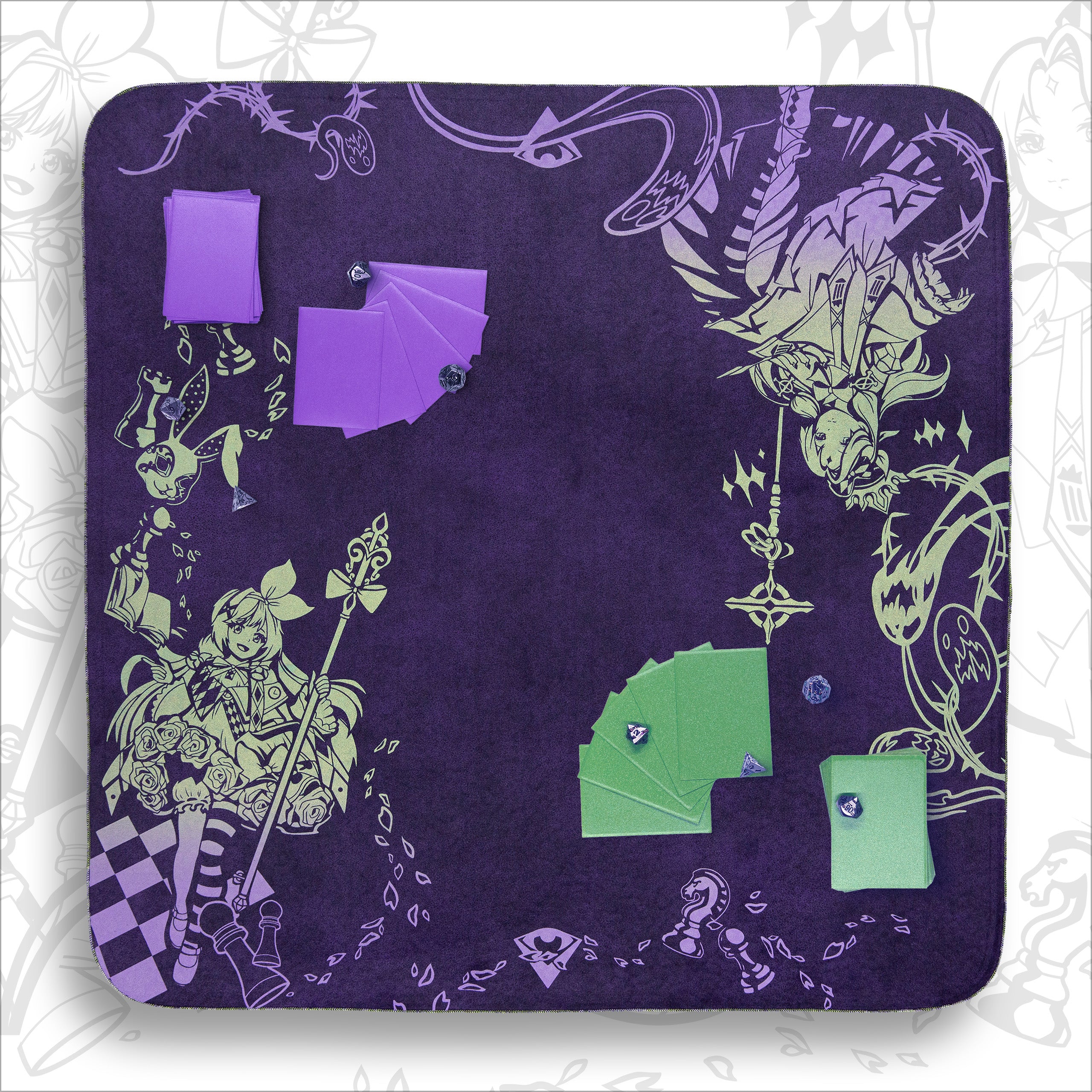 We are excited to expand our Grand Archive collection. Journey into Wonderland with Alice and her dark reflection, brought to life across all-new dreamlike colorways. Featuring stunning original fan art by Jax Jocson.