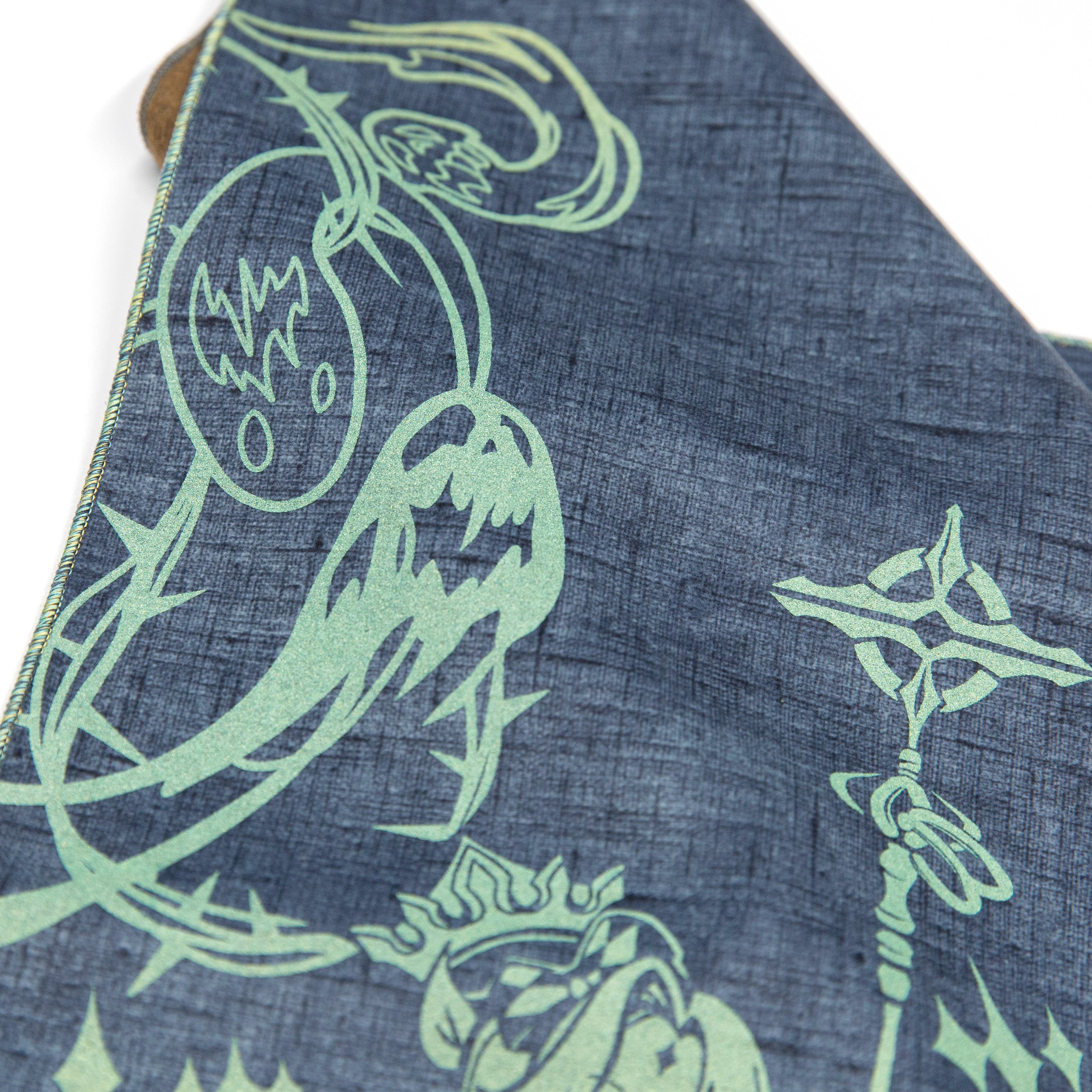 Inked in an iridescent fountain of emerald and gold, set perfectly against Gladius' azure hatched surface.