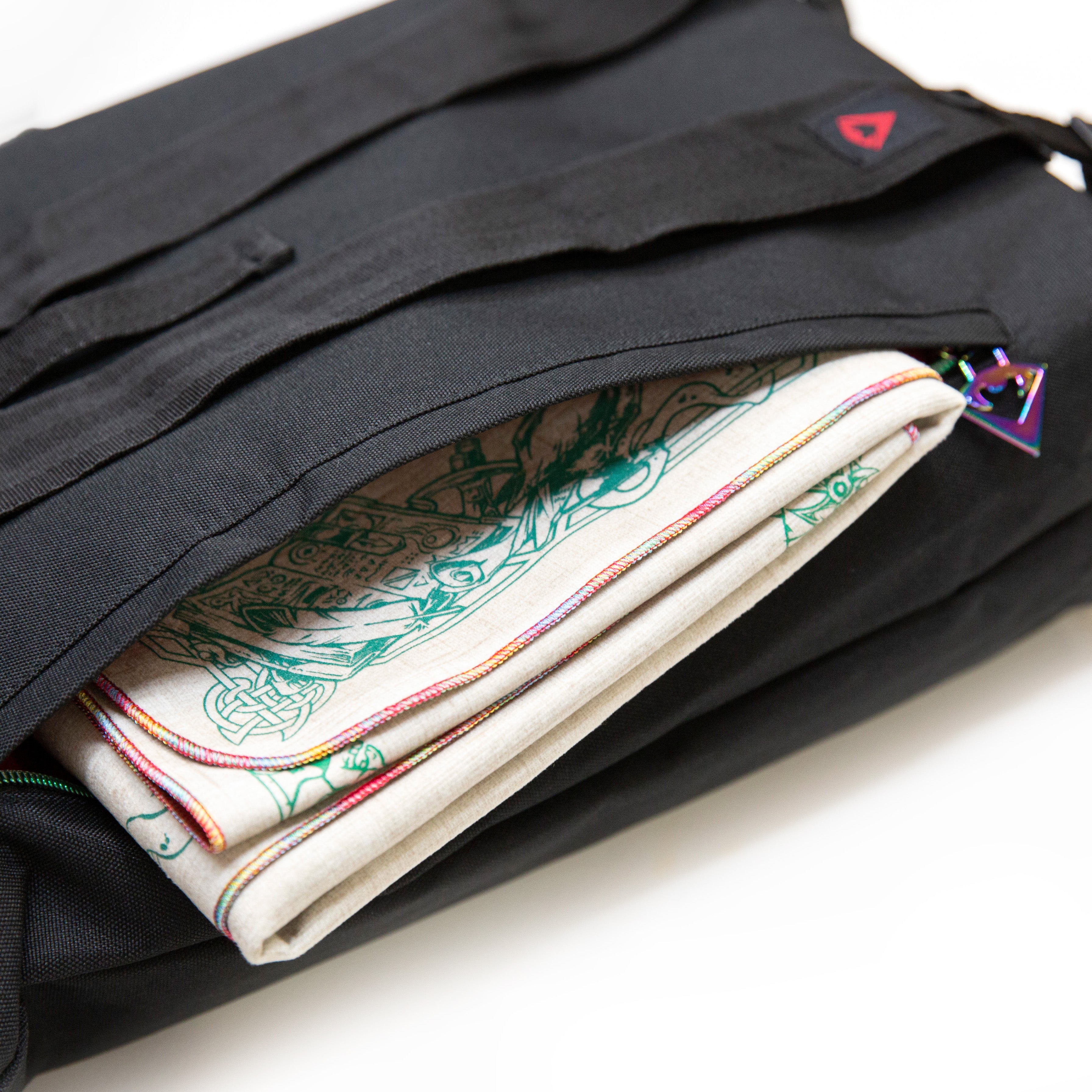 The deceptively spacious main compartment comfortably fits your favorite deckboxes, binders, and everyday gear. With specialized pockets and weather-ready construction, it’s the perfect companion for travel, tournaments, or daily carry.