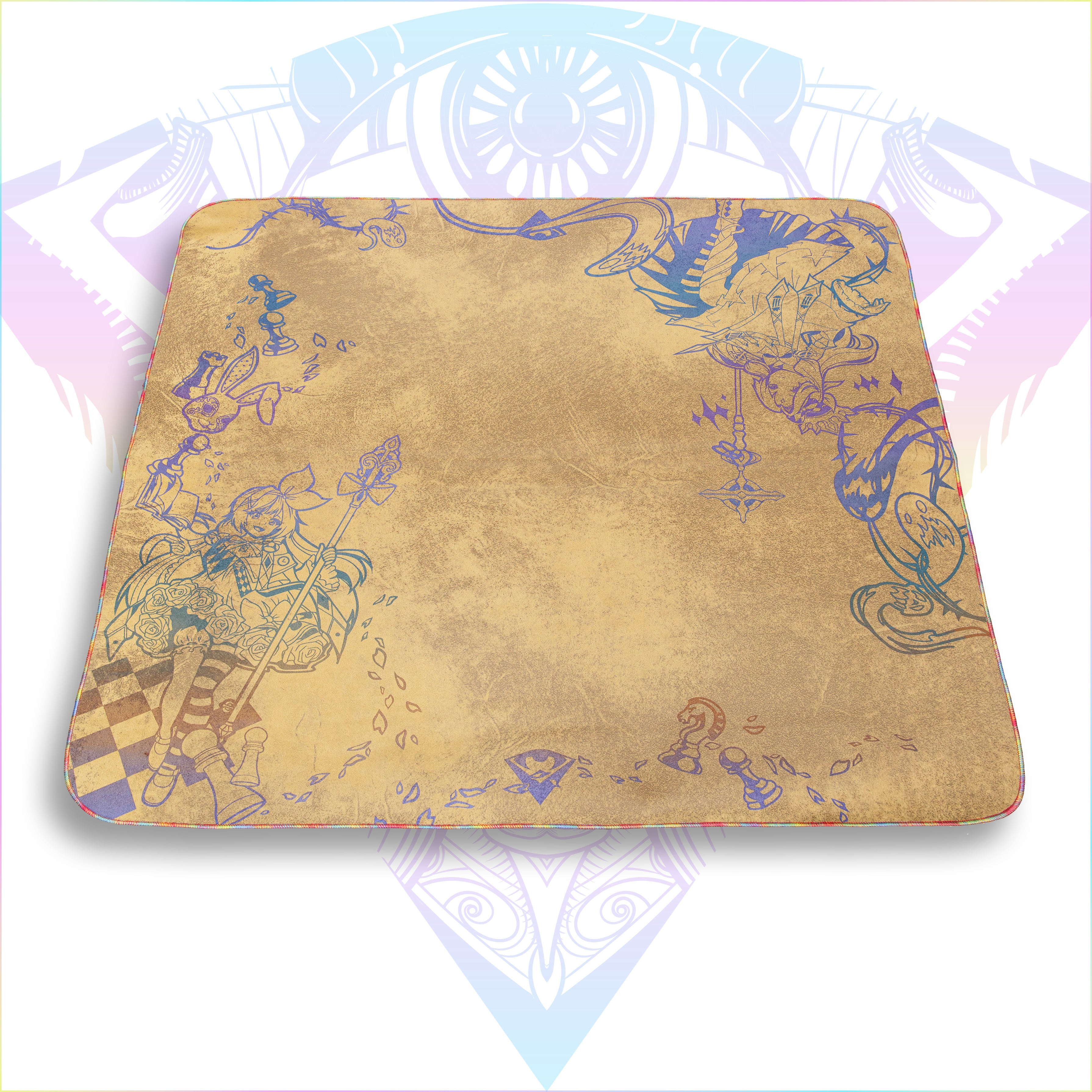 Lunaluxe is a smooth, sleek fabric that we simply could not resist due to its unique aesthetic. Unlike many of our cloths that are a soft plush, Lunaluxe has a feel that lands it somewhere between the standard rubber playmat and vinyl. Its surface boasts high playability as cards still can glide across the surface easily.