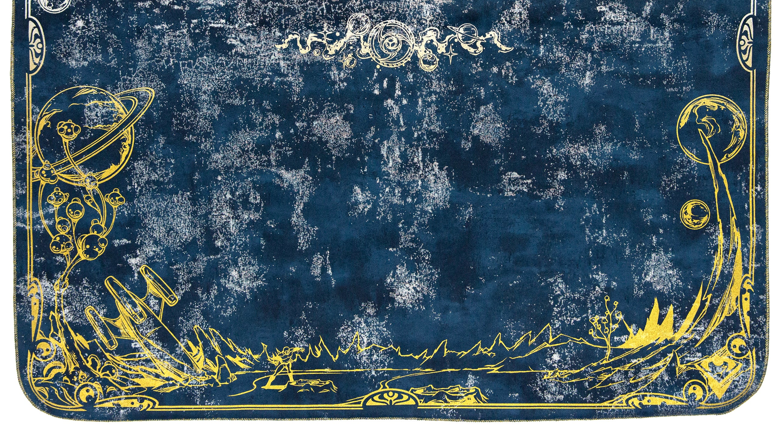 We are proud to continue our collaboration with Spellground and Khalsa Brain Games with Echoes of Orion, an interstellar tribute to Spellground’s legendary Orion playmat from 1995.