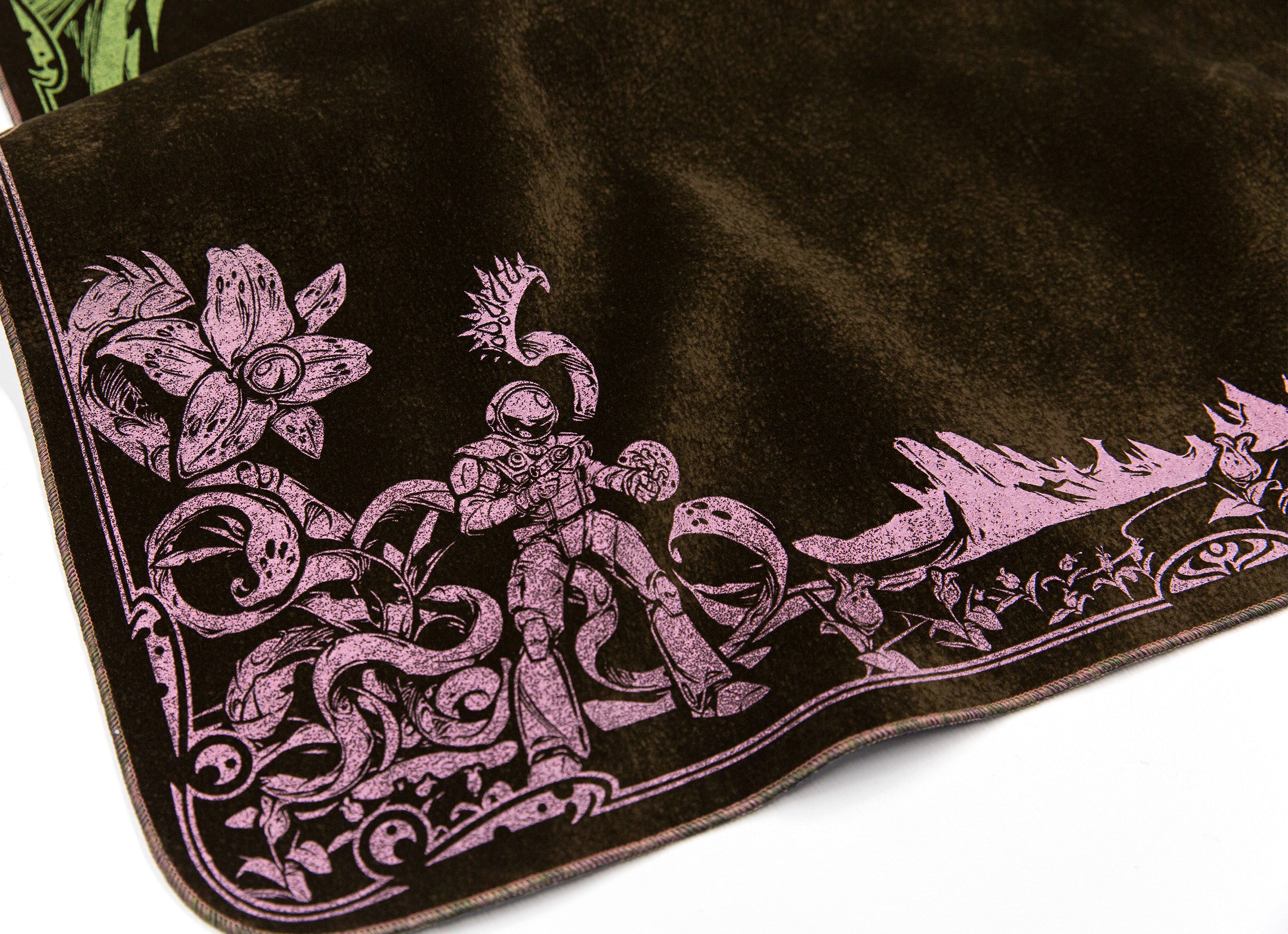 We are proud to continue our collaboration with Spellground and Khalsa Brain Games with Echoes of Orion, an interstellar tribute to Spellground’s legendary Orion playmat from 1995.