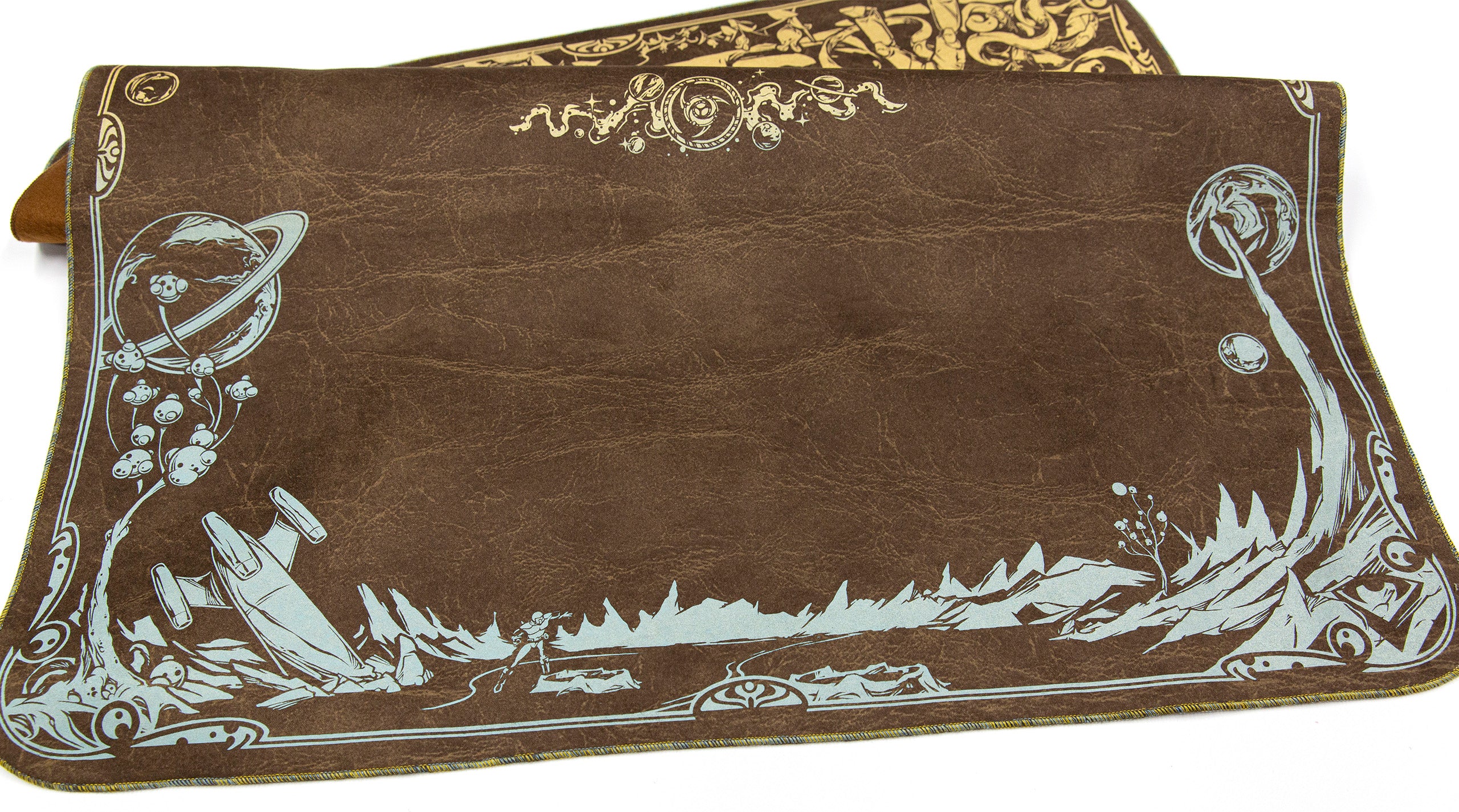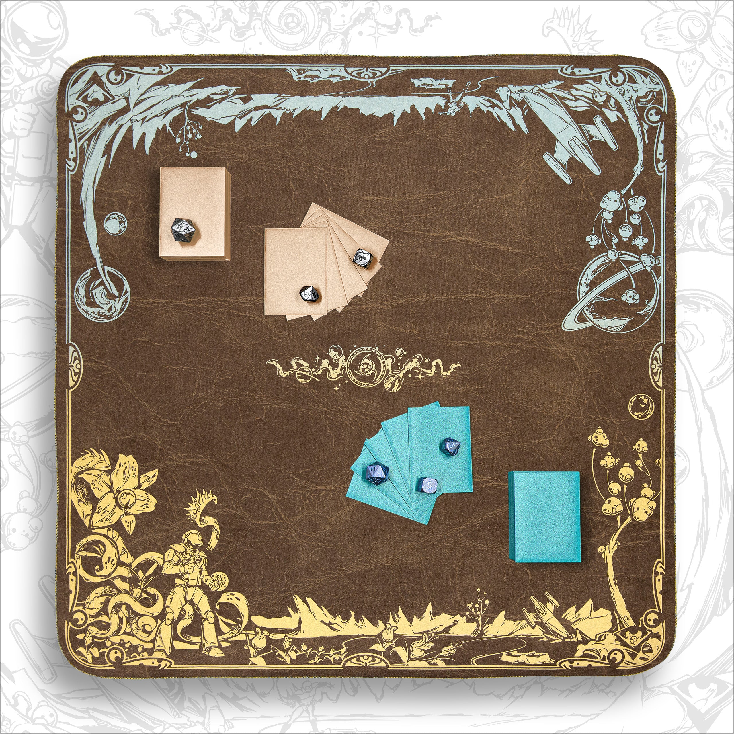 We are proud to continue our collaboration with Spellground and Khalsa Brain Games with Echoes of Orion, an interstellar tribute to Spellground’s legendary Orion playmat from 1995.