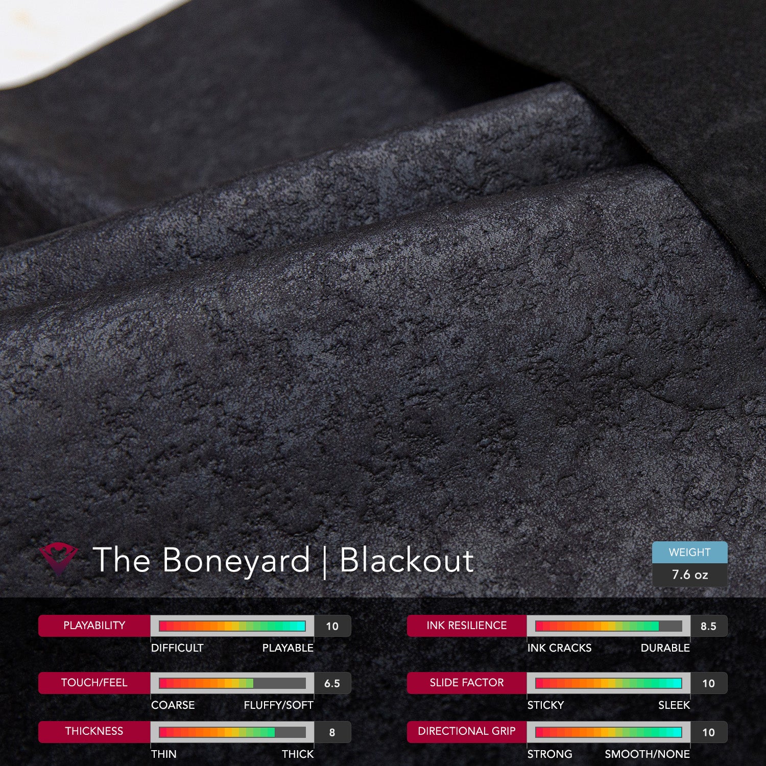 Boneyard is a signature Pvramid fabric that ushered in a new era of premium Field Cloths. Renowned for its dark allure and unmatched playability, it delivers a refined, grip-free surface with a distinctive texture that makes fanning cards effortless while ensuring seamless maneuverability during play.
