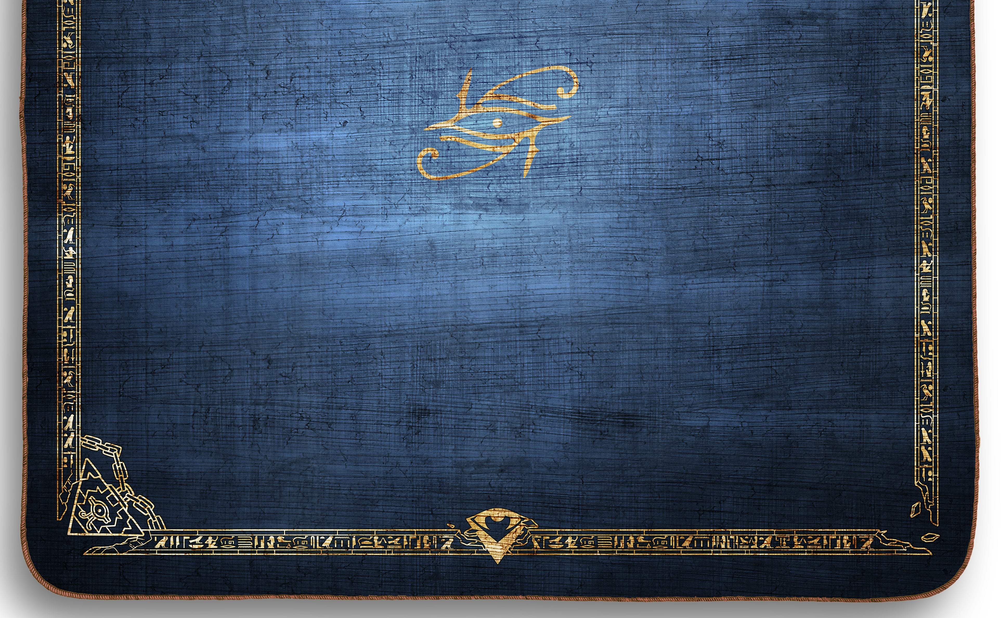 Memoir of a Pharaoh is an ancient Egyptian minimalist border design featuring etched hieroglyphics.