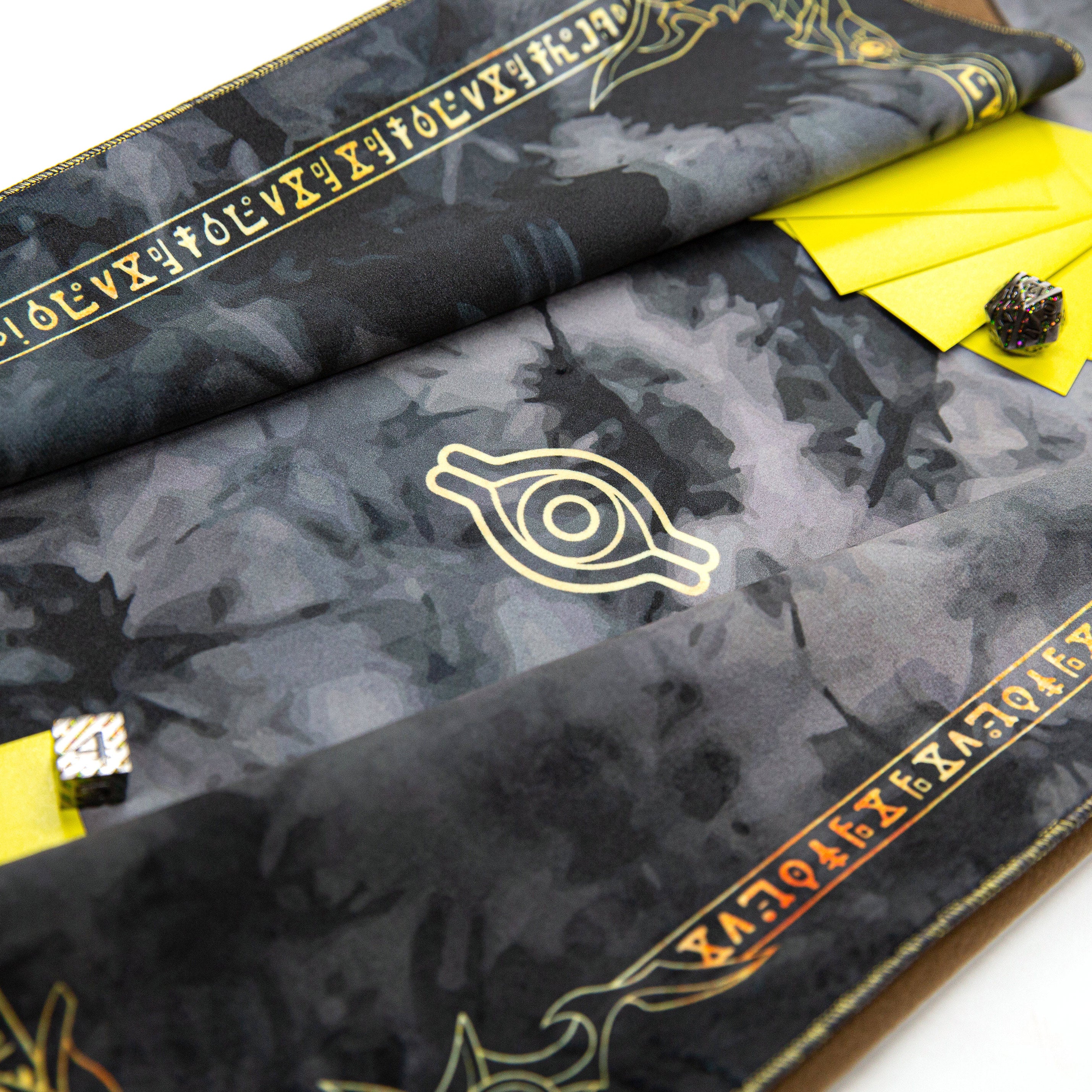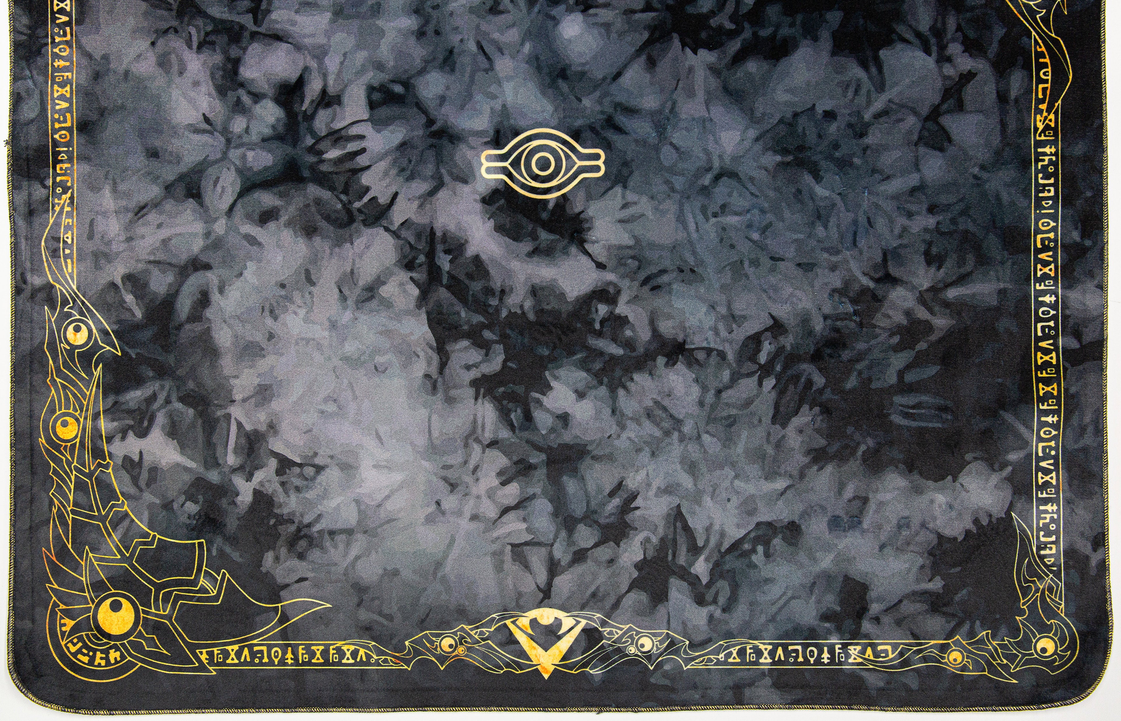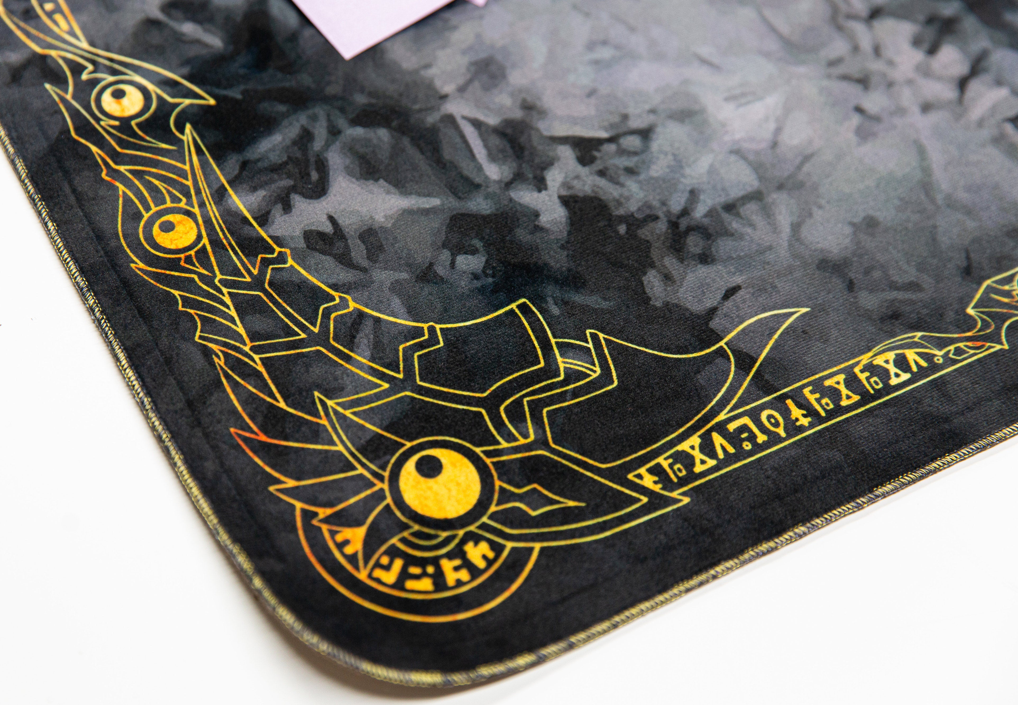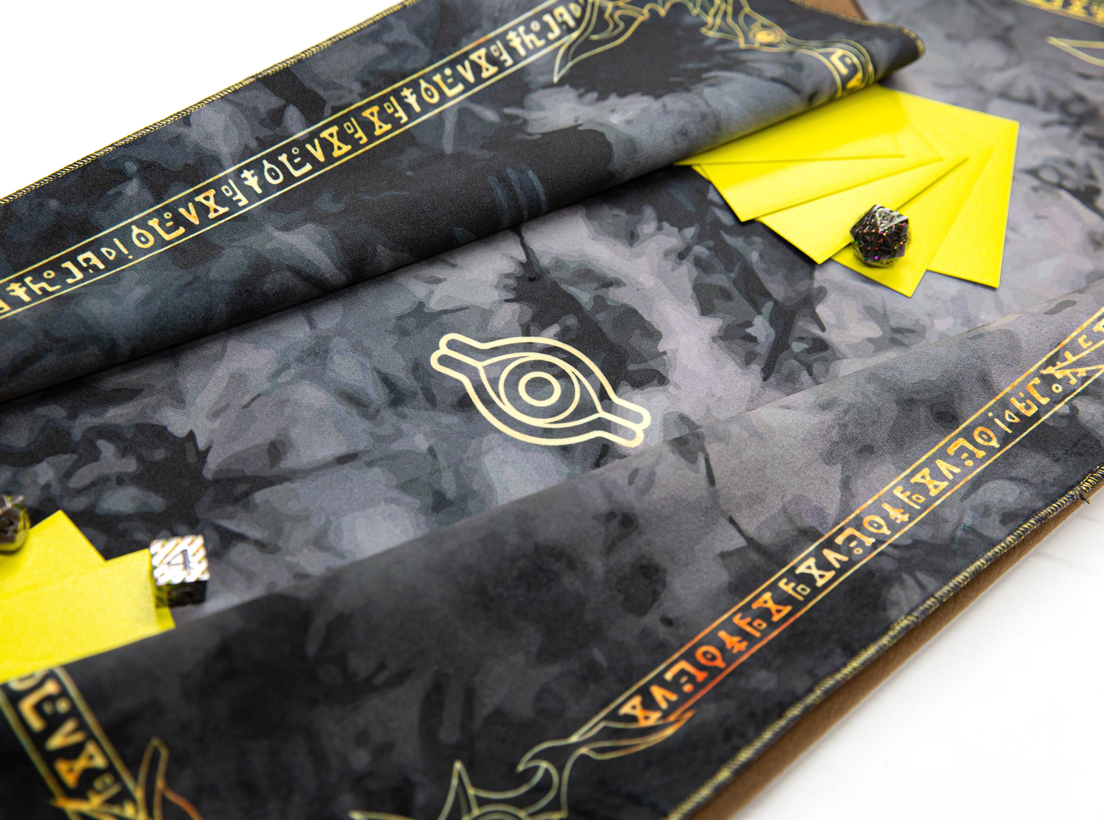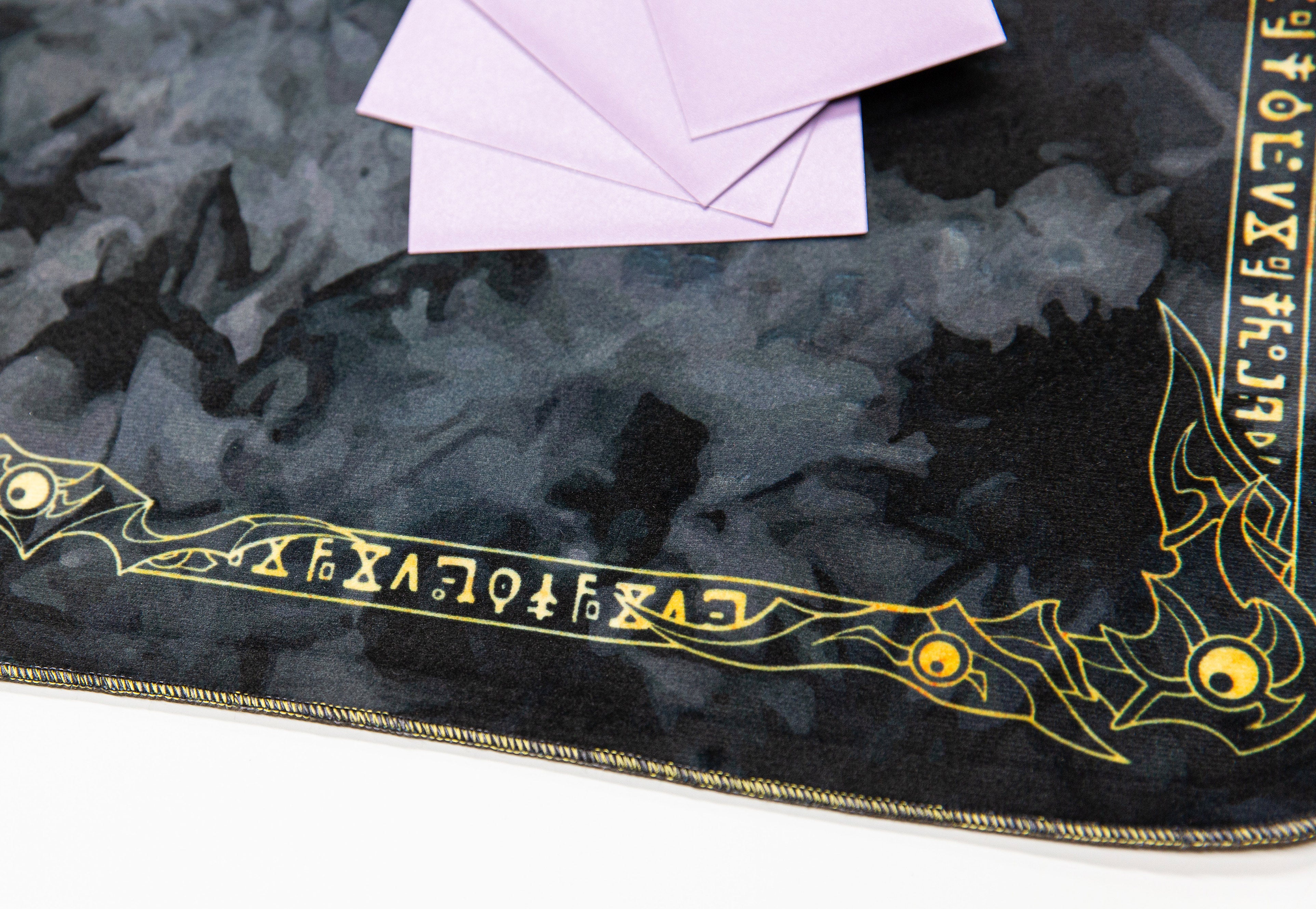 The Magician's Altar is our minimalist border field cloth inspired by our first ever release, the Dark Sorceress. Mystical hieroglyphs decorate the border as artifacts from the sorceress herself are strewn about the playfield.
