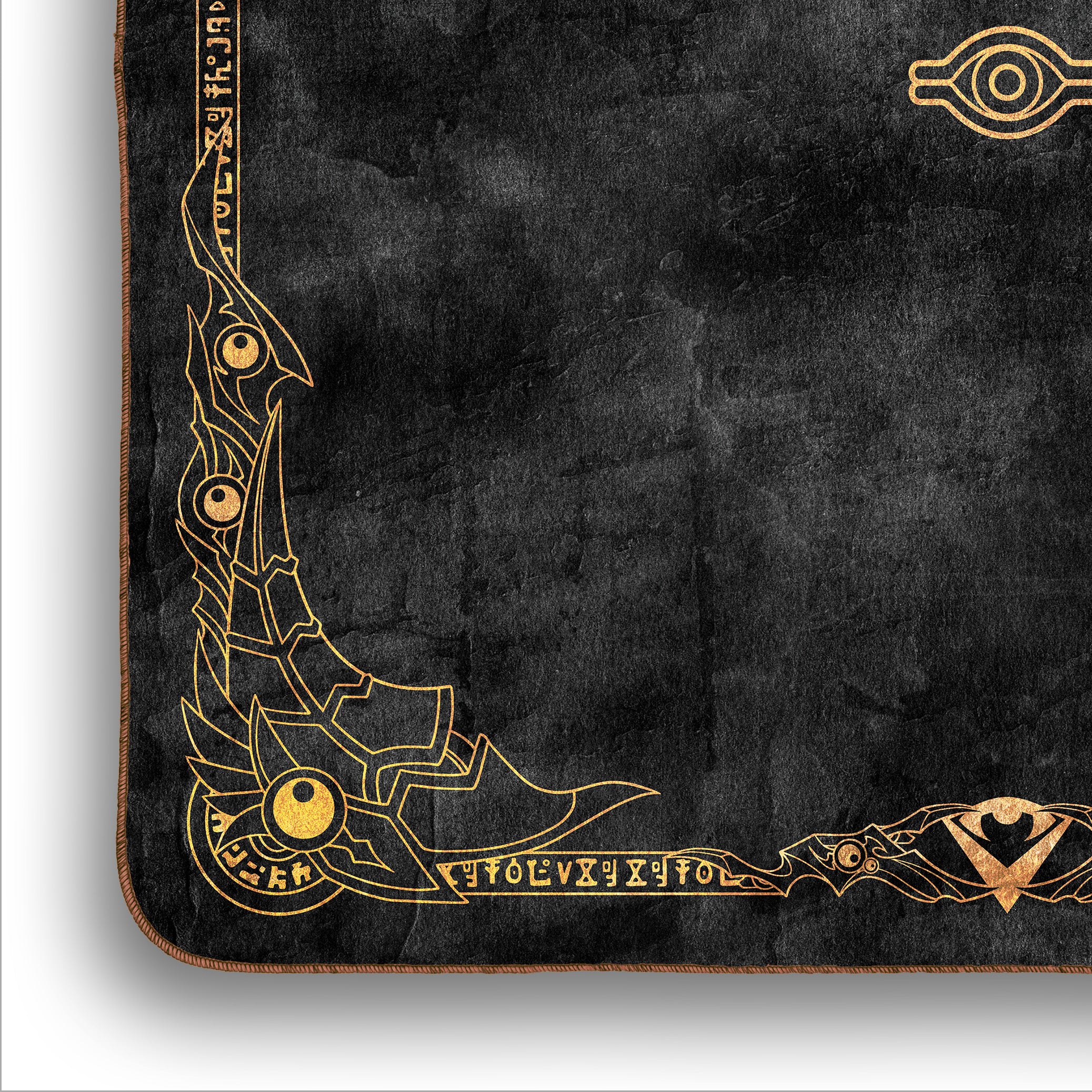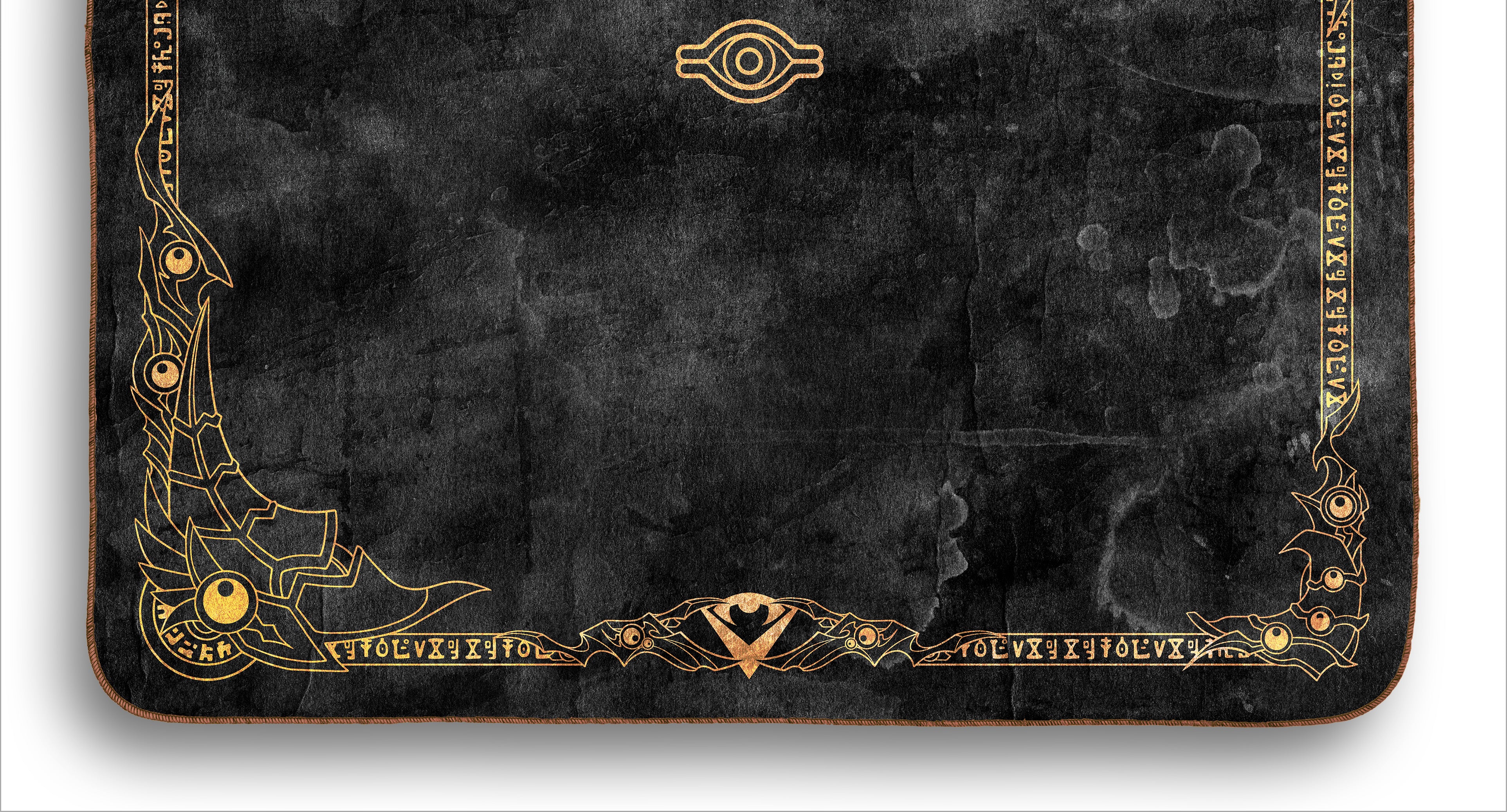 The Magician's Altar is our minimalist border field cloth inspired by our first ever release, the Dark Sorceress. Mystical hieroglyphs decorate the border as artifacts from the sorceress herself are strewn about the playfield.
