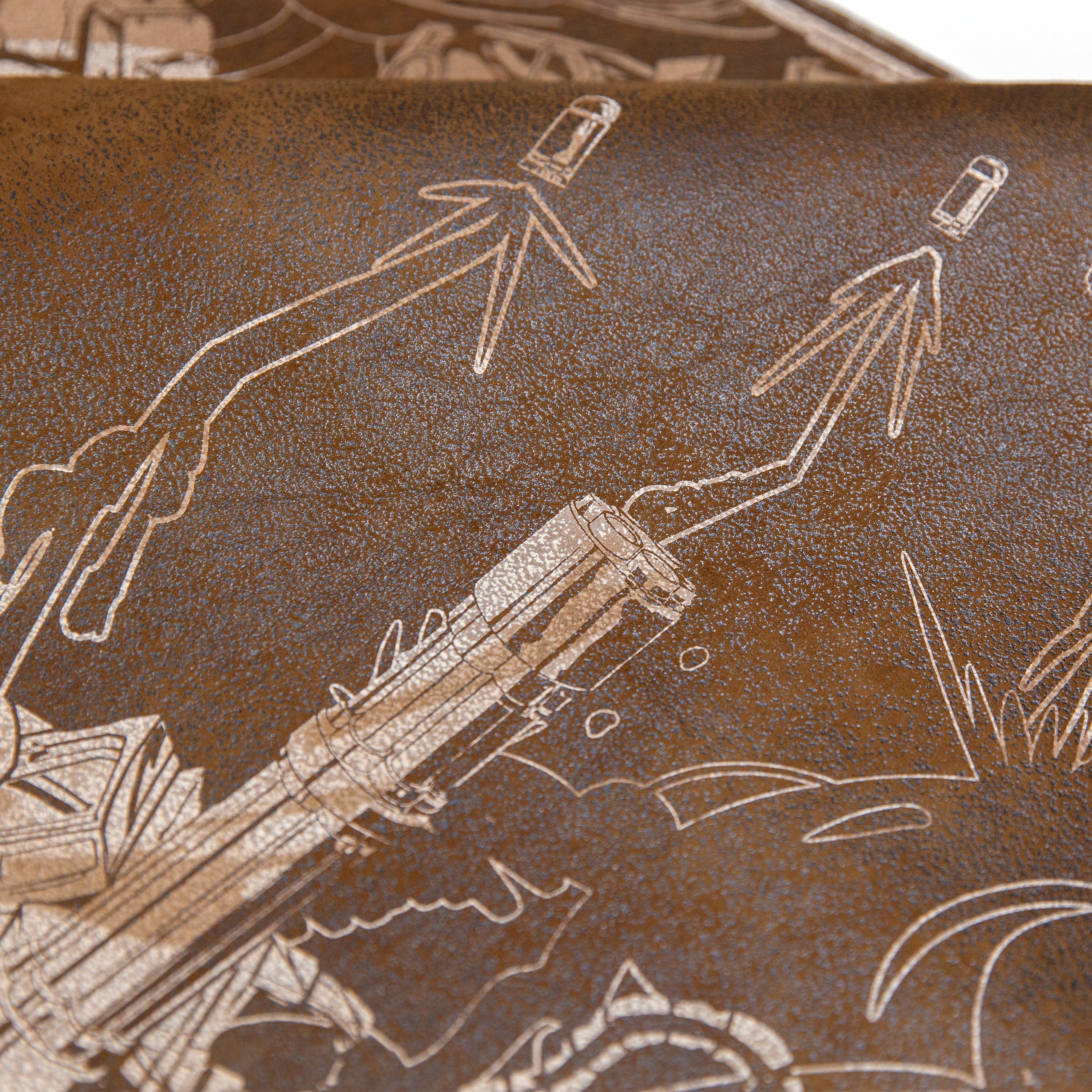 Inked to mimic a vintage pilot flight jacket, the Aviator's Crest is hand brushed in thinned tones of tan and alabaster.