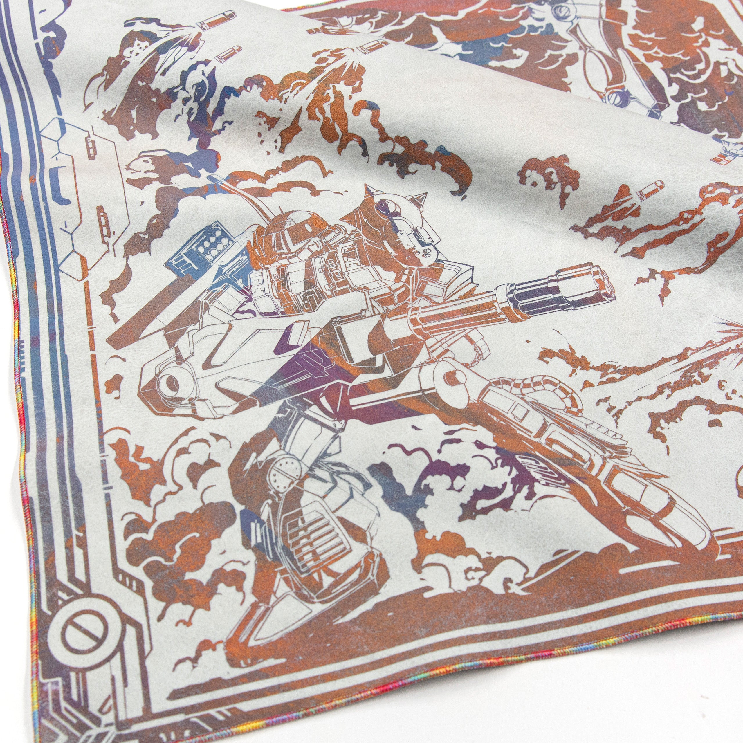 All our Chromas are hand-stitched with our signature full rainbow iridescent threading. While some rare general-release field cloths use a single Chroma thread in combination with other colors, our Chroma cloths are stitched exclusively with five spools for maximum vibrancy.