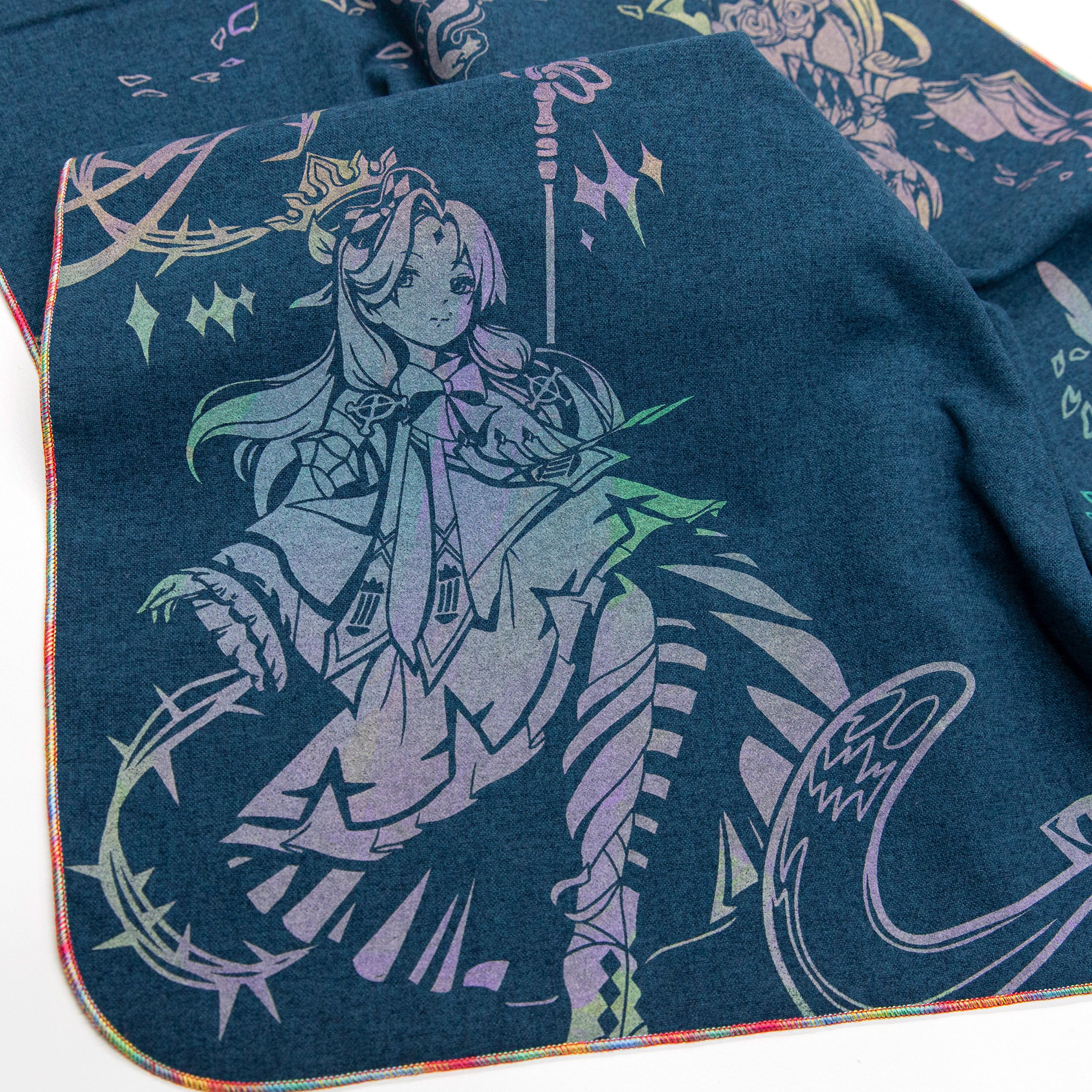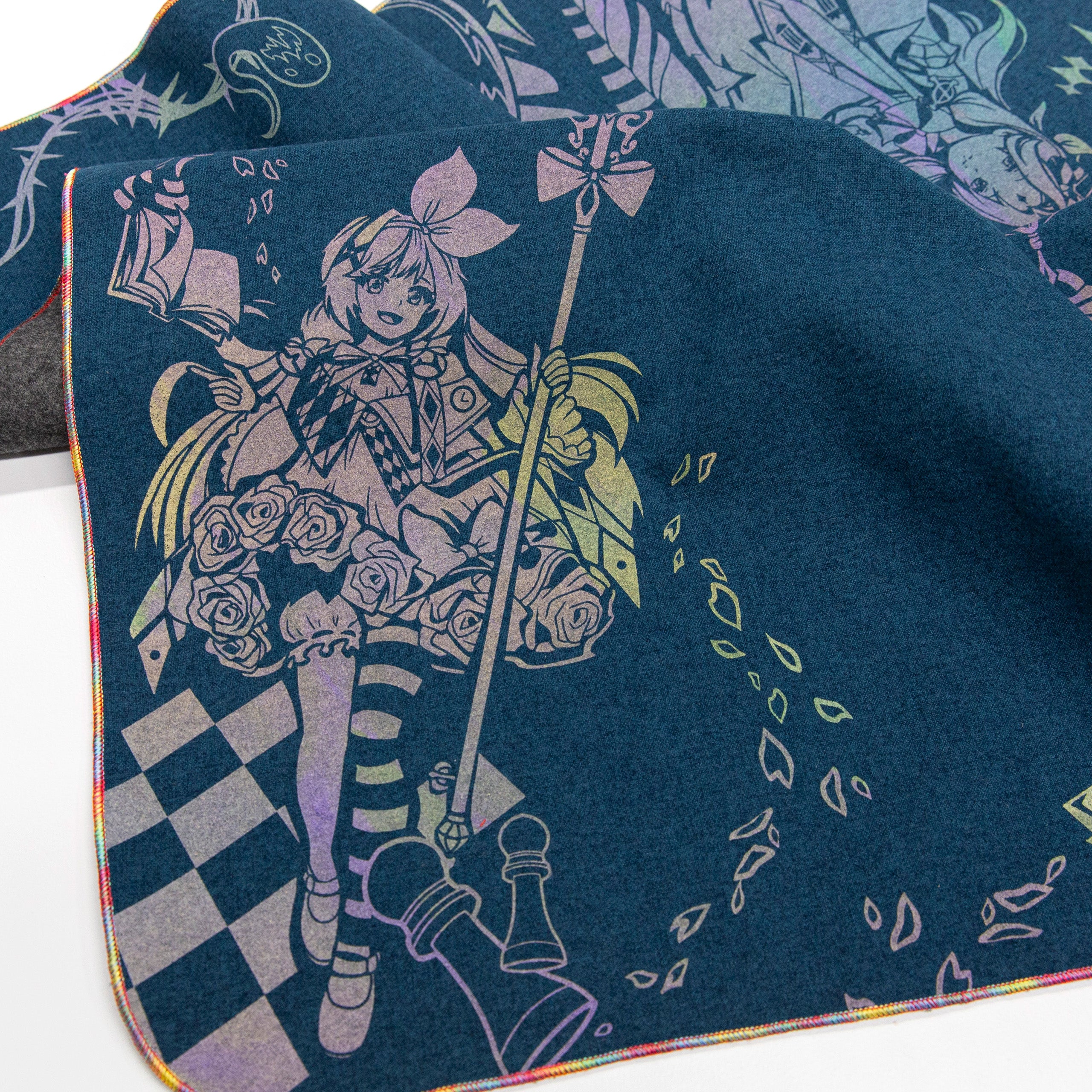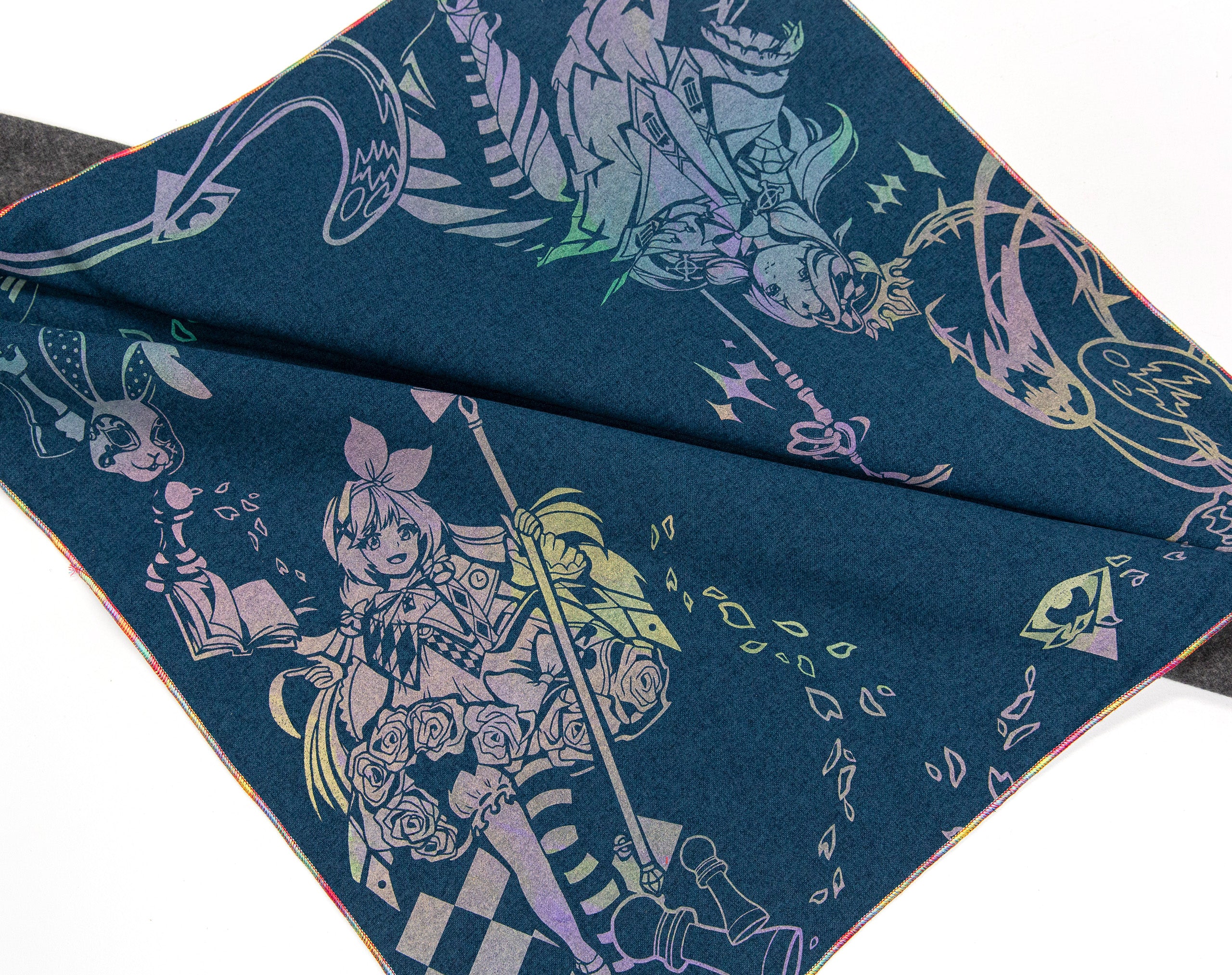 All our Chromas are hand-stitched with our signature full rainbow iridescent threading. While some rare general-release field cloths use a single Chroma thread in combination with other colors, our Chroma cloths are stitched exclusively with five spools for maximum vibrancy.