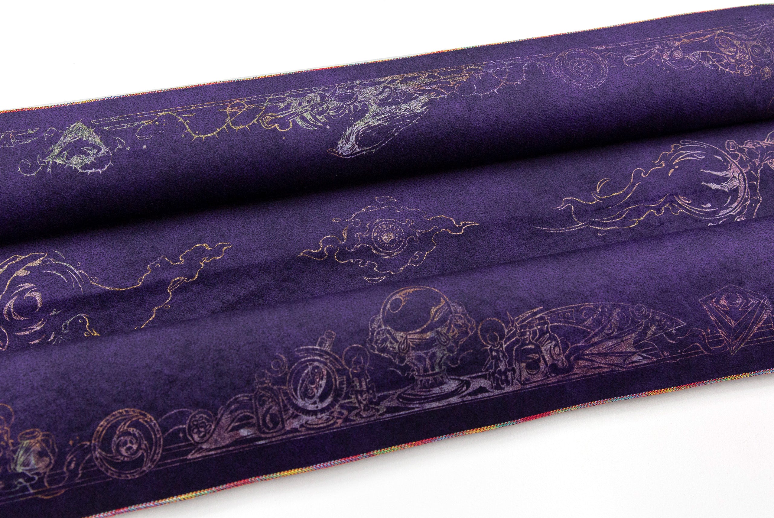 All our Chromas are hand-stitched with our signature full rainbow iridescent threading. While some rare general-release field cloths use a single Chroma thread in combination with other colors, our Chroma cloths are stitched exclusively with five spools for maximum vibrancy.