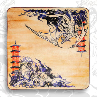 This pair of fiery legends appear in a dual design that features a beautiful Sumi-e brush style that was masterfully drawn by our very own Amanda LaPalme.