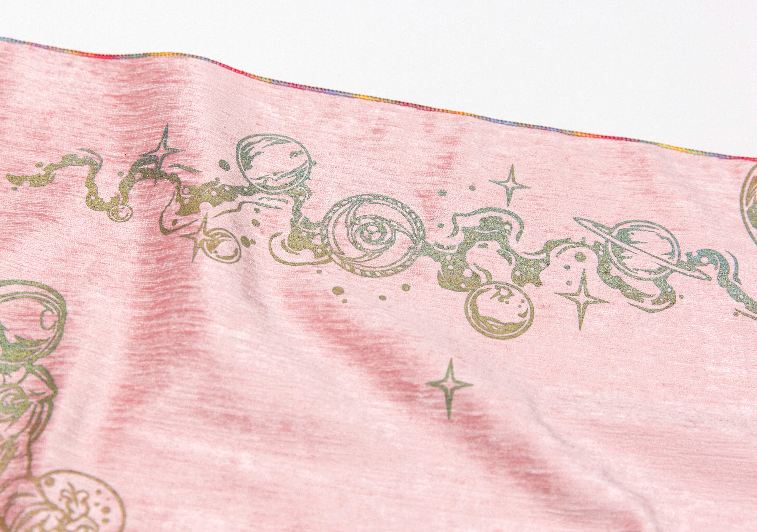All our Chromas are hand-stitched with our signature full rainbow iridescent threading. While some rare general-release field cloths use a single Chroma thread in combination with other colors, our Chroma cloths are stitched exclusively with five spools for maximum vibrancy.