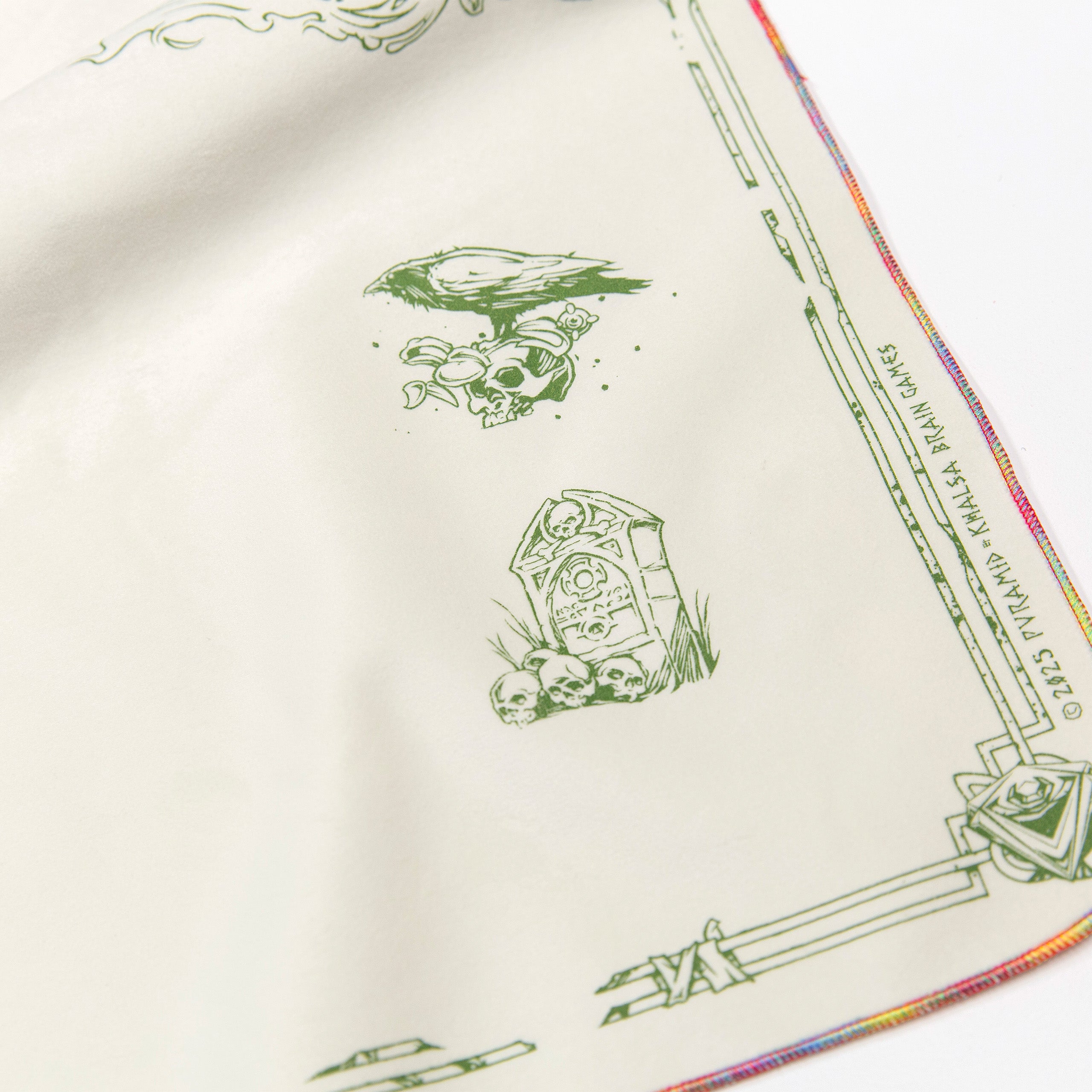 All our Chromas are hand-stitched with our signature full rainbow iridescent threading. While some rare general-release field cloths use a single Chroma thread in combination with other colors, our Chroma cloths are stitched exclusively with five spools for maximum vibrancy.