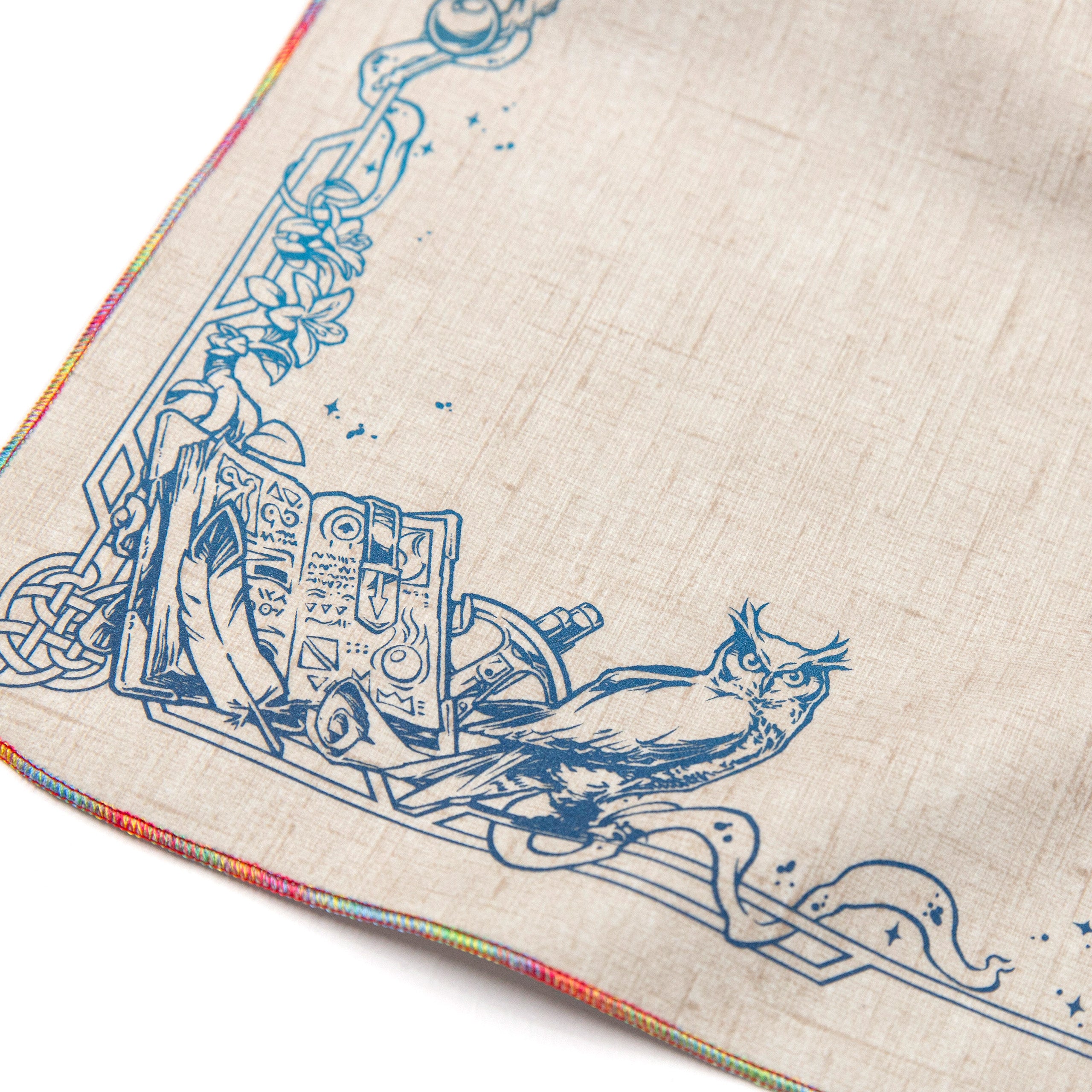 All our Chromas are hand-stitched with our signature full rainbow iridescent threading. While some rare general-release field cloths use a single Chroma thread in combination with other colors, our Chroma cloths are stitched exclusively with five spools for maximum vibrancy.