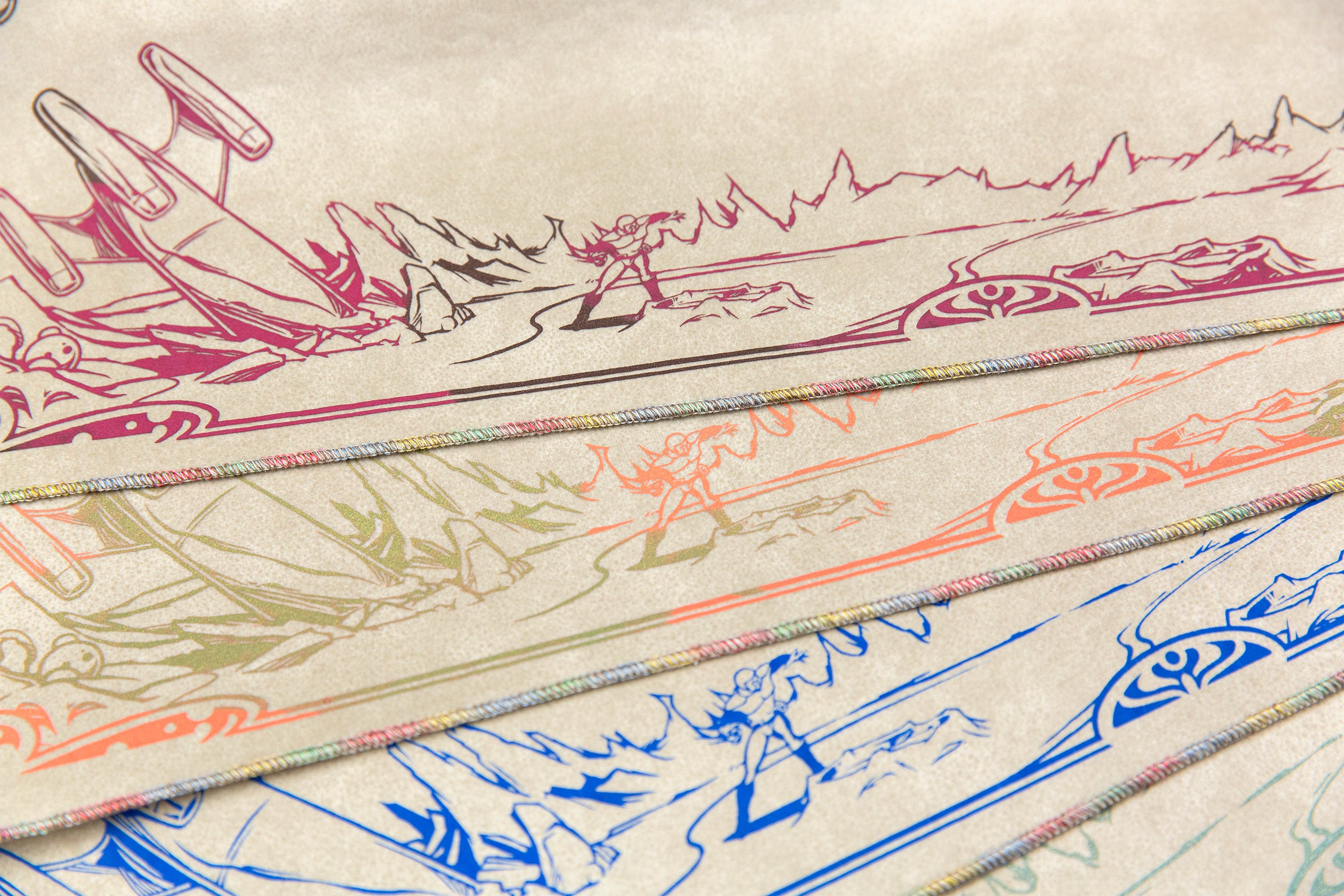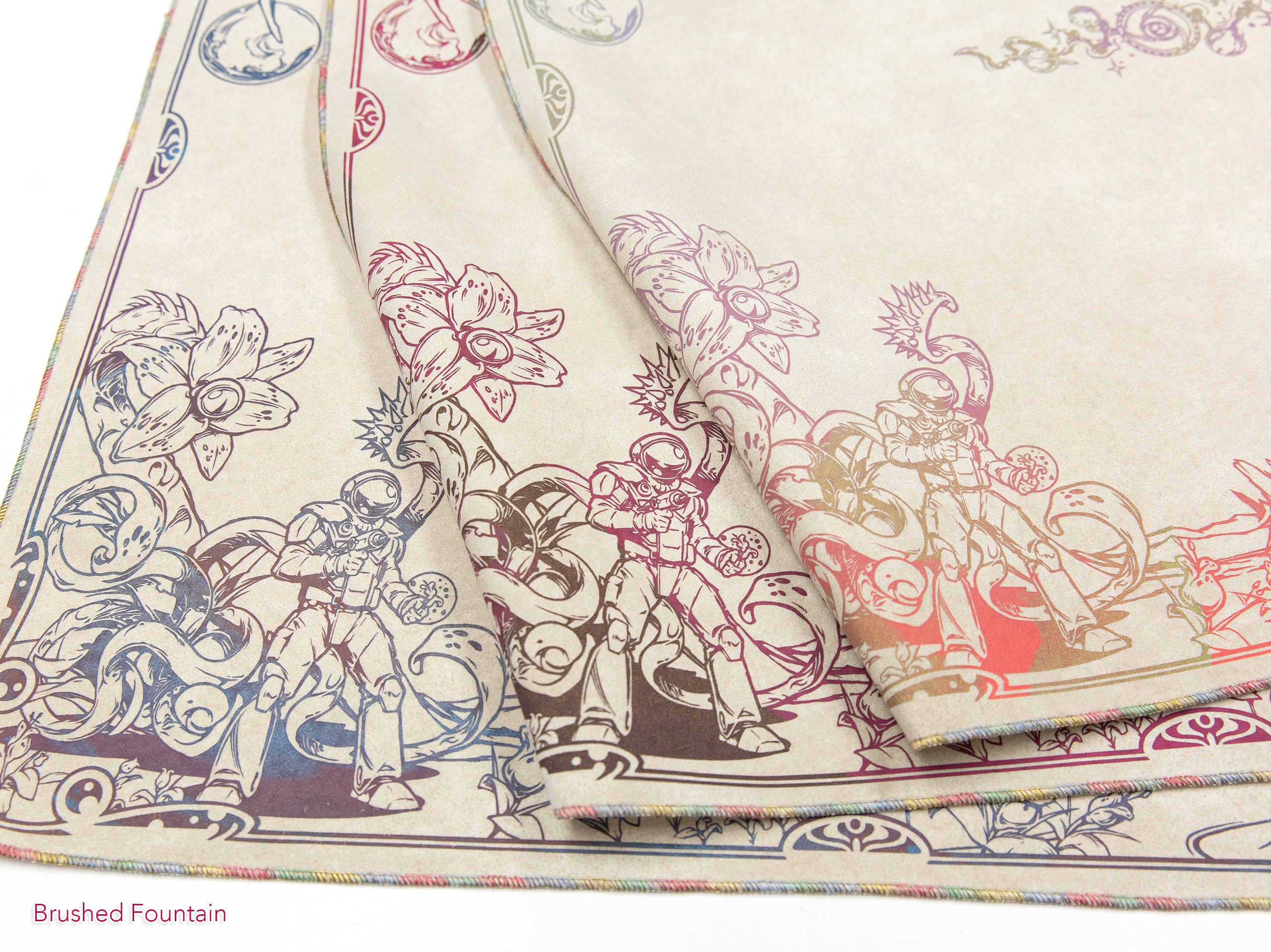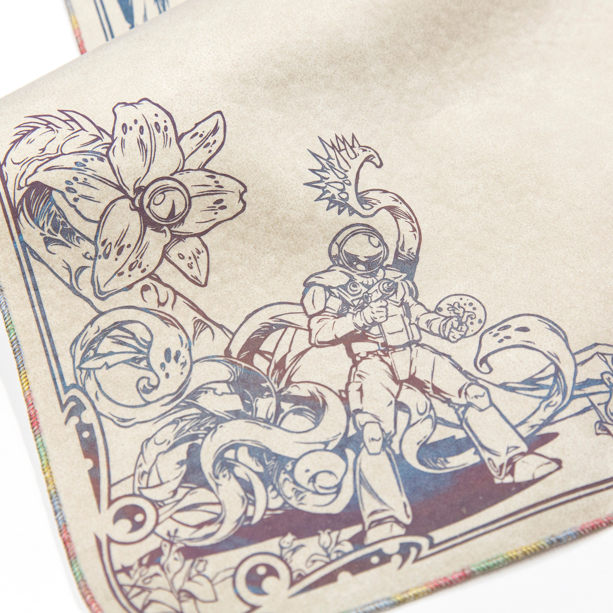 We are proud to continue our collaboration with Spellground and Khalsa Brain Games with Echoes of Orion, an interstellar tribute to Spellground’s legendary Orion playmat from 1995.