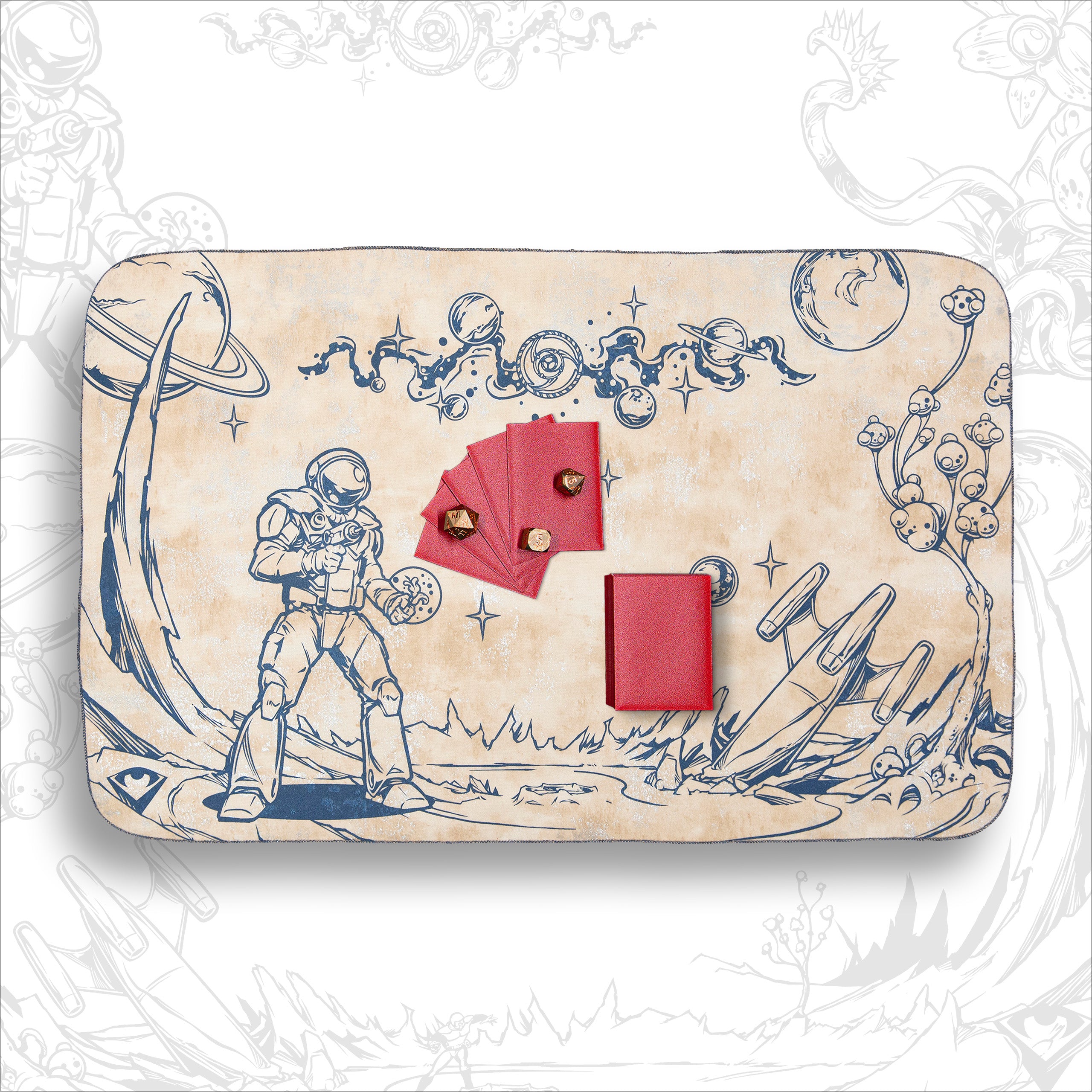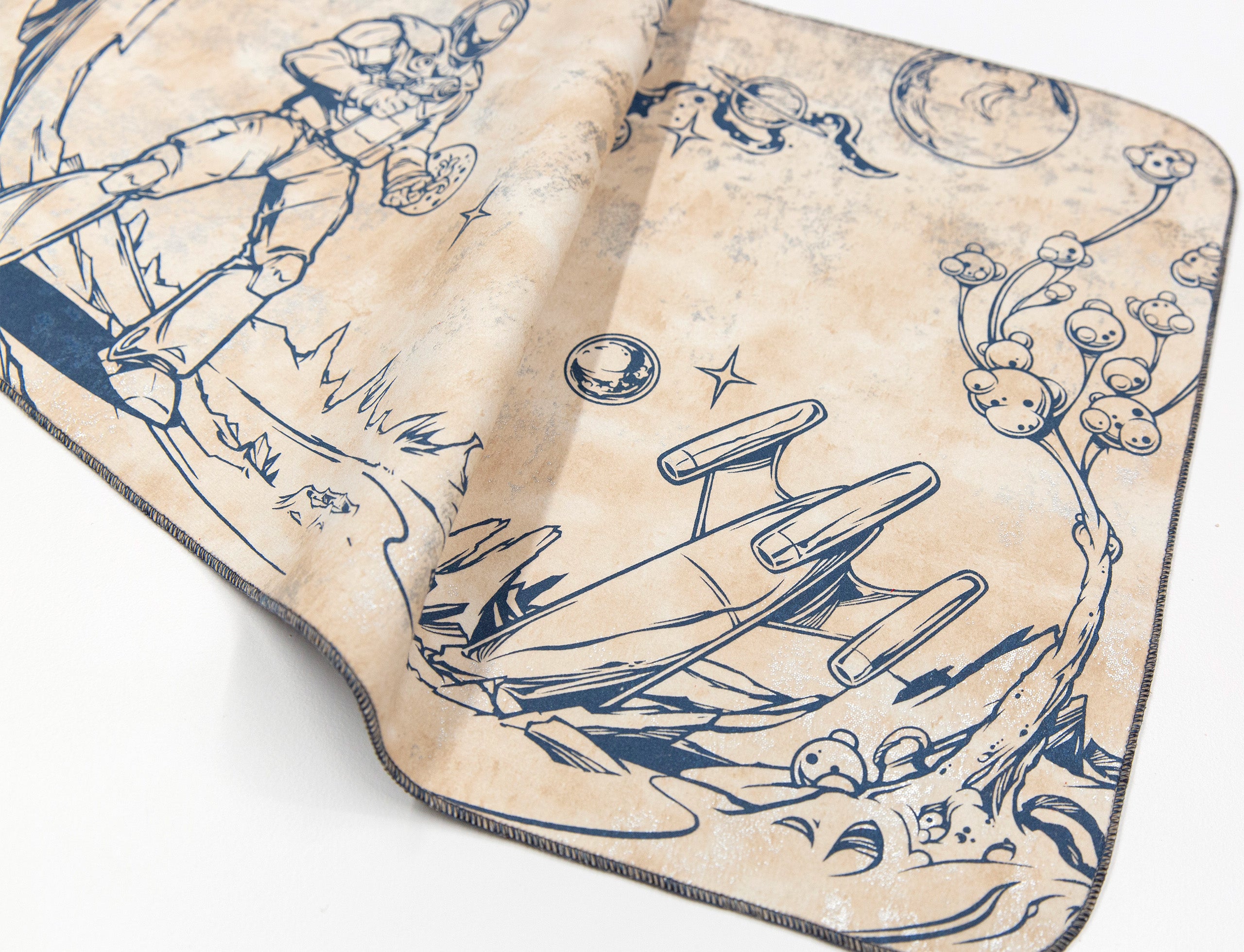 We are proud to continue our collaboration with Spellground and Khalsa Brain Games with Echoes of Orion, an interstellar tribute to Spellground’s legendary Orion playmat from 1995.