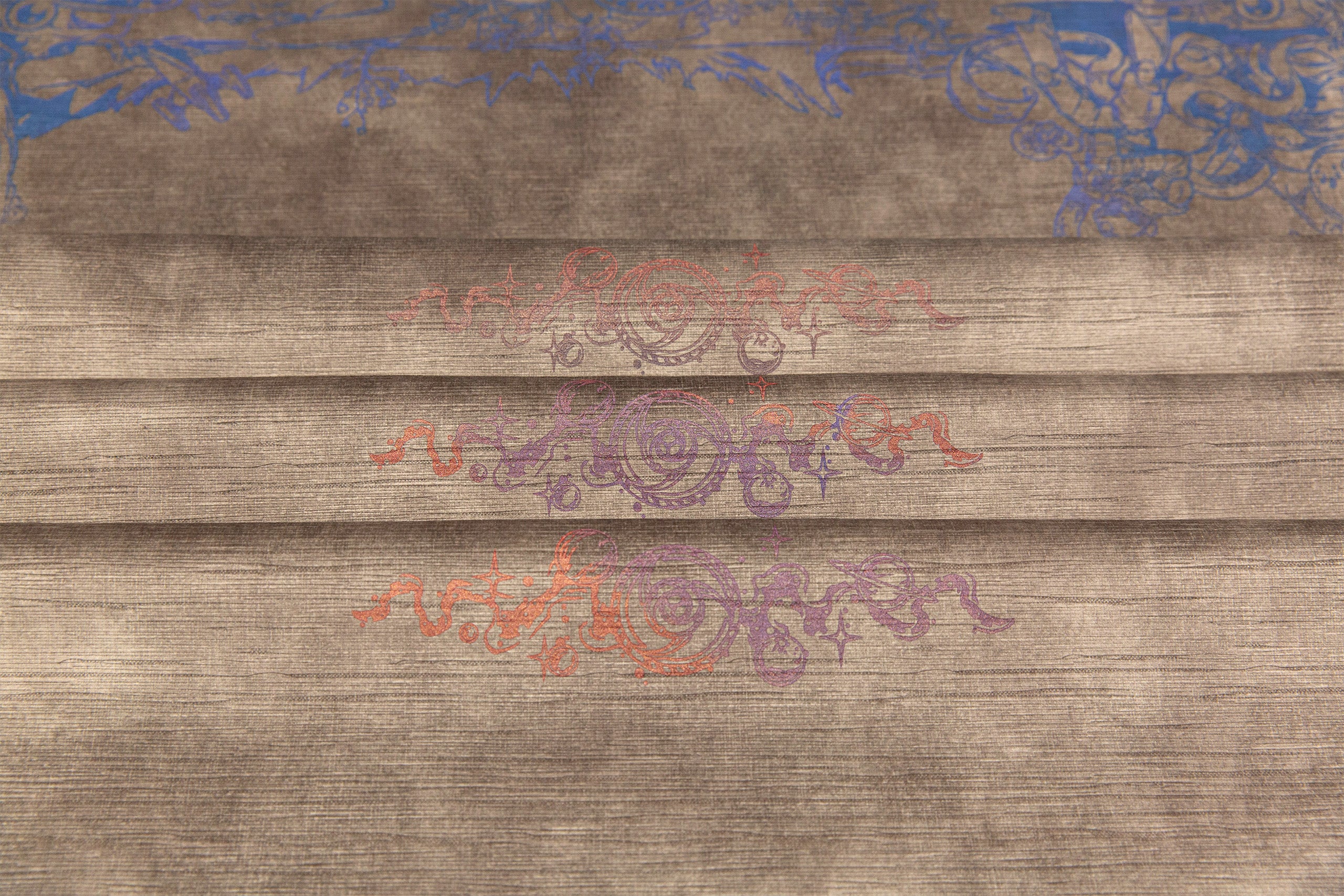 The Brushed-Fountain Gradient technique requires an artisan printer to hand-paint a unique pattern in beautiful motifs prior to pressing. It is an extremely tedious process in which the large screen is carefully brushed by hand, then cleaned and reset after 2-3 prints.