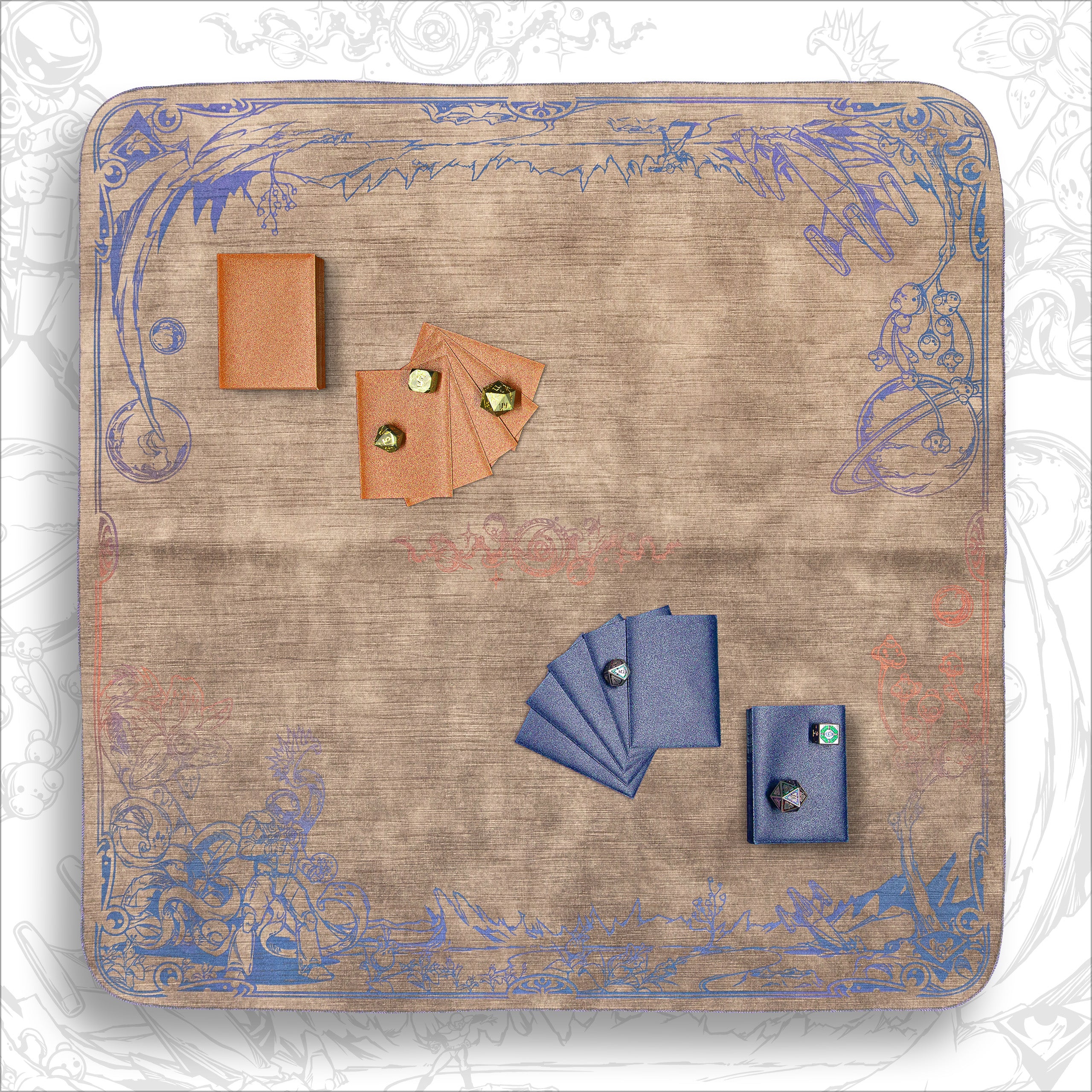 We are proud to continue our collaboration with Spellground and Khalsa Brain Games with Echoes of Orion, an interstellar tribute to Spellground’s legendary Orion playmat from 1995.