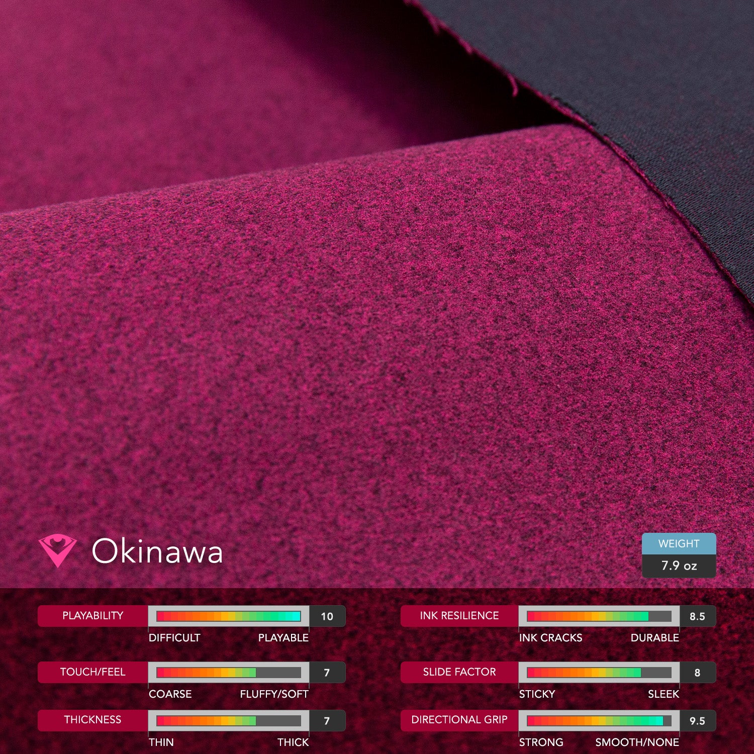 Okinawa is a luxury cloth crafted by the same creators of Nyraxion. Its texture is unlike any other cloth in the Pvramid catalog, boasting an incredibly dense, felt-like surface that allows cards to glide effortlessly. While not soft and plush like our thicker DLES-like cloths, it brings its own tactile profile that epitomizes luxury.