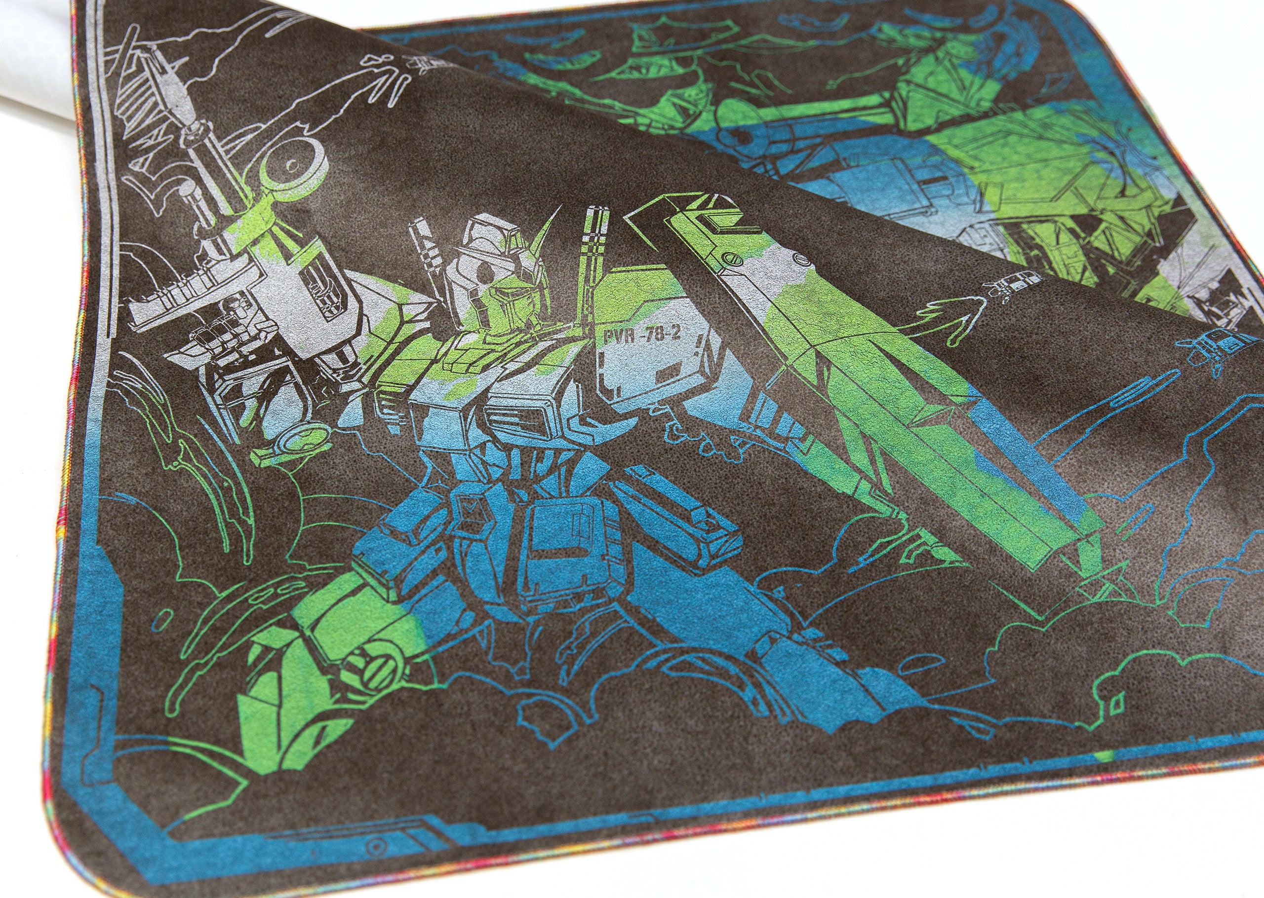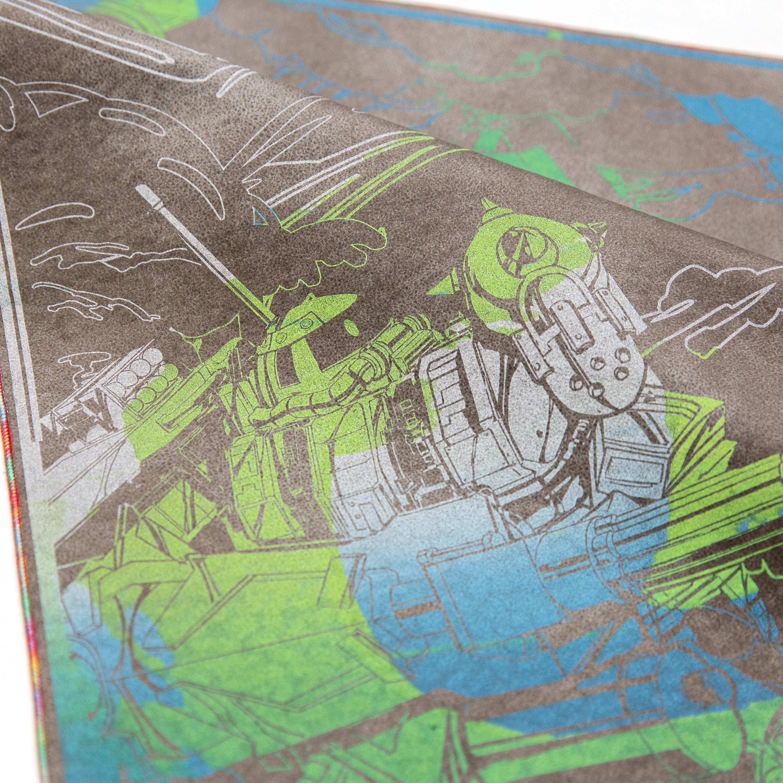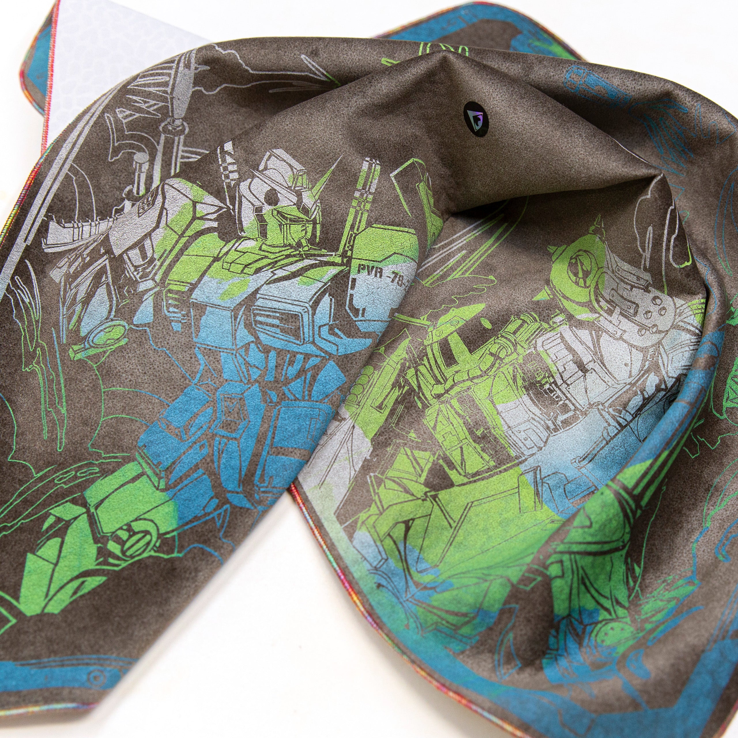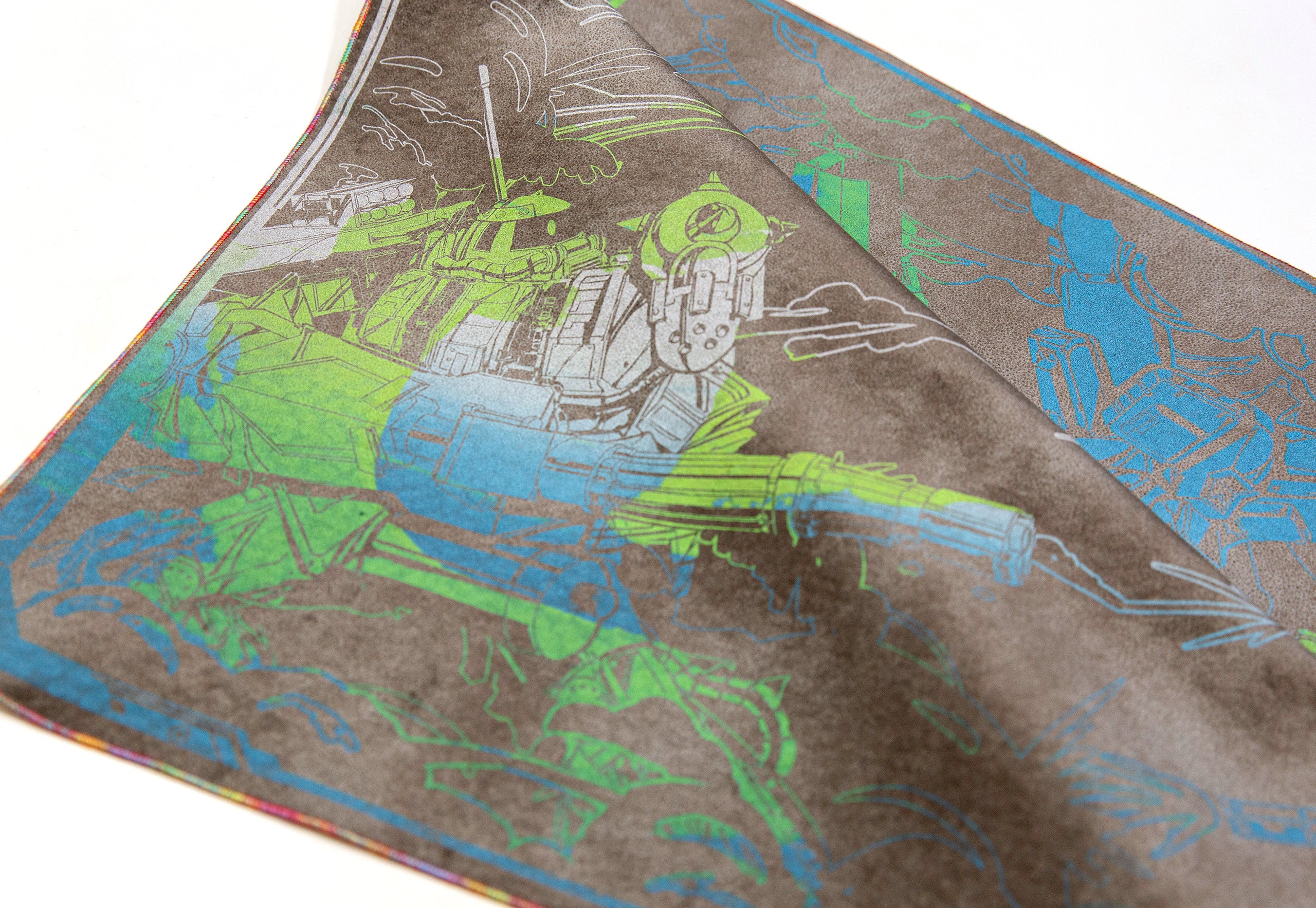 All our Chromas are hand-stitched with our signature full rainbow iridescent threading. While some rare general-release field cloths use a single Chroma thread in combination with other colors, our Chroma cloths are stitched exclusively with five spools for maximum vibrancy.